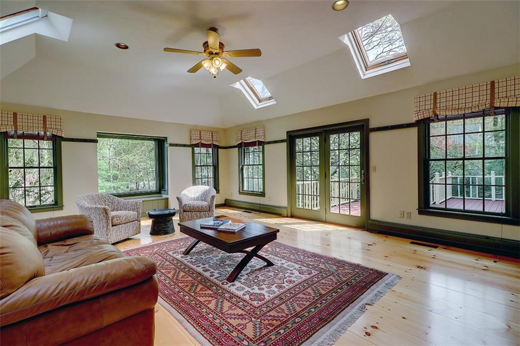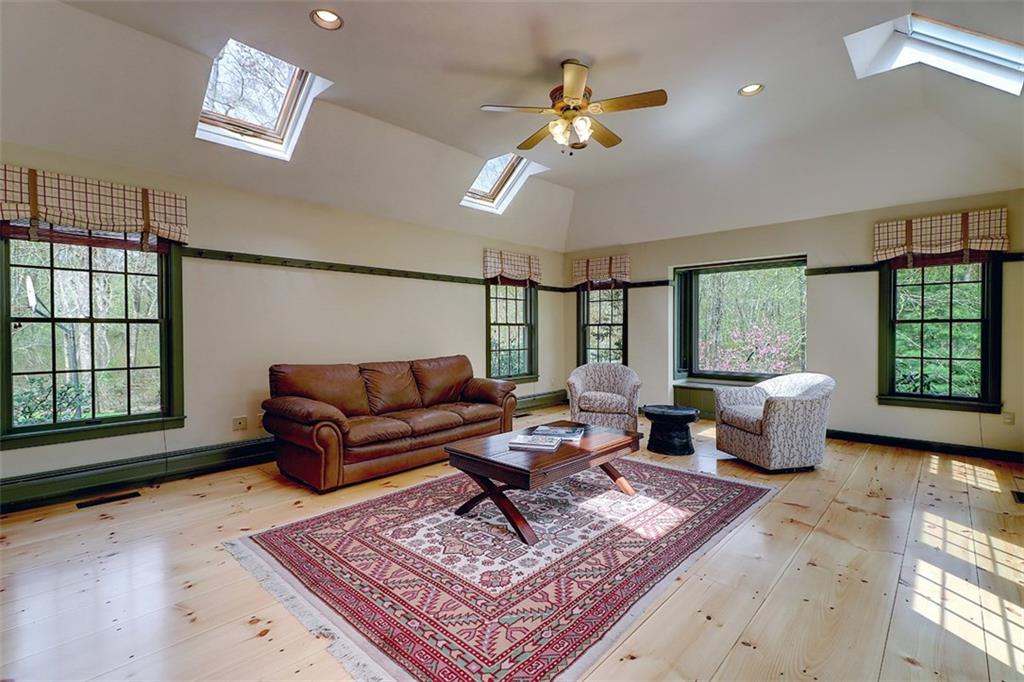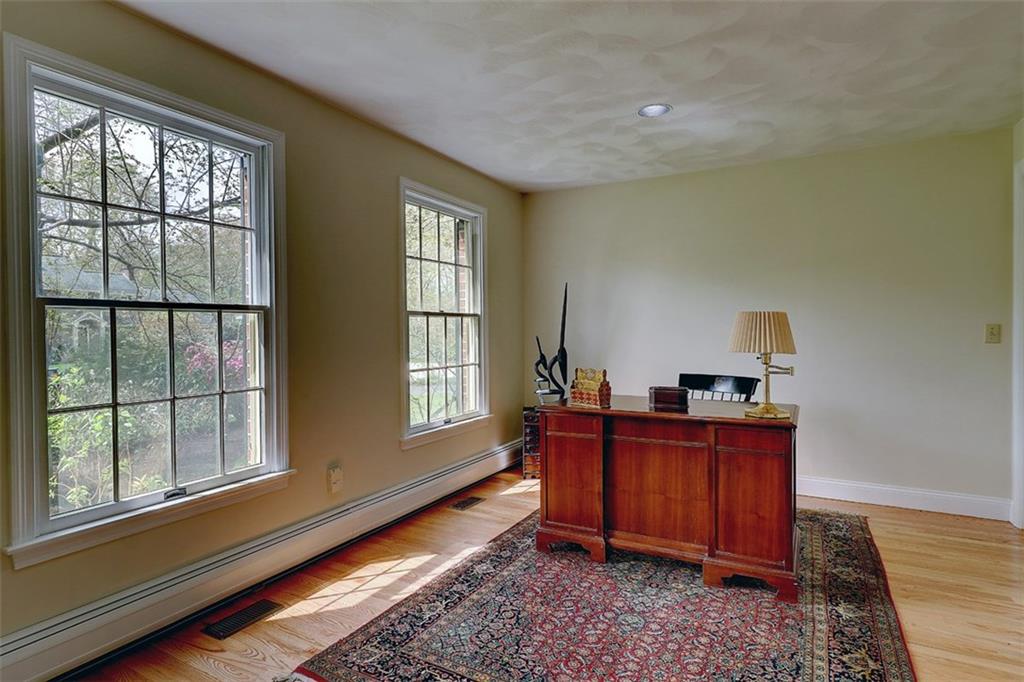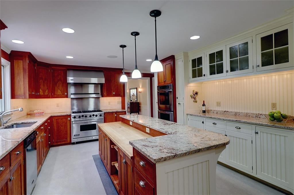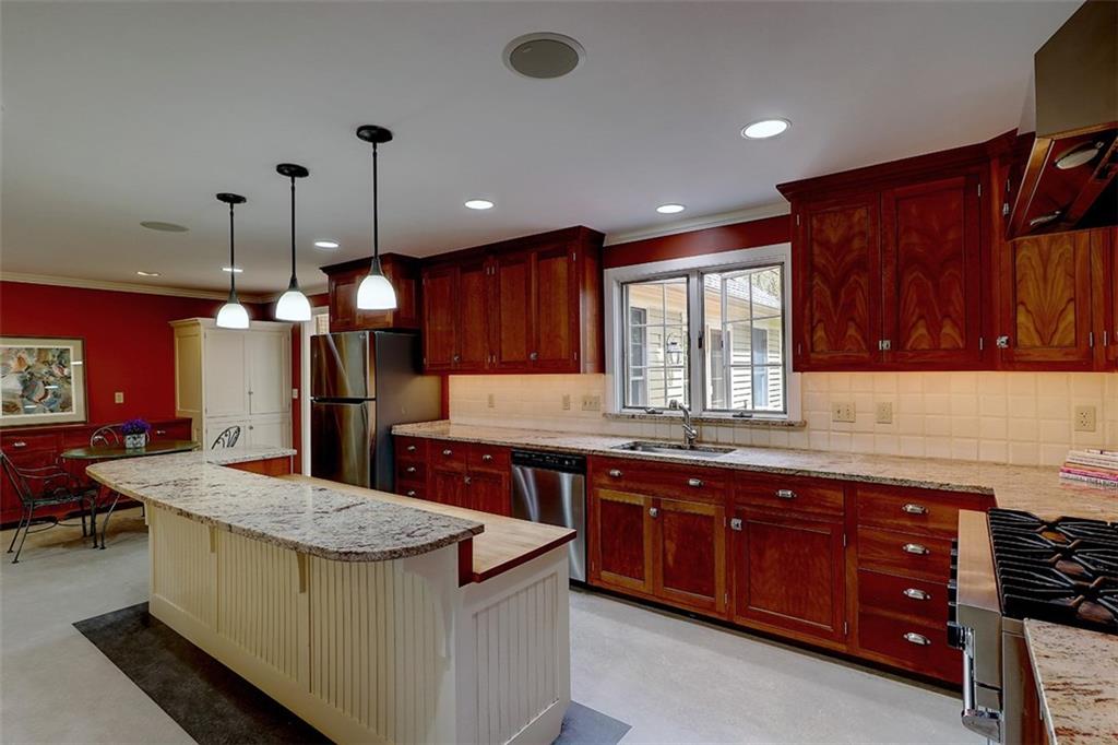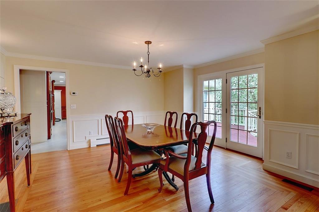 This stately Georgian colonial sits on over an acre of gorgeous manicured grounds and abuts conservation land! With gleaming hardwood floors, this elegant home has a large formal living room which flows directly into the adjacent formal dining room. Picture frame moldings, crown moldings, custom columns and French doors add an element of sophistication to these rooms. The eat-in chefs kitchen is an entertainers dream with its abundance of custom cabinetry, large center island, granite countertops, and high-end stainless appliances. Cook or bake your heart away with its Viking stove and two additional wall ovens! Adjoining the kitchen is the large sun-drenched family room which overlooks the extremely private rear yard.