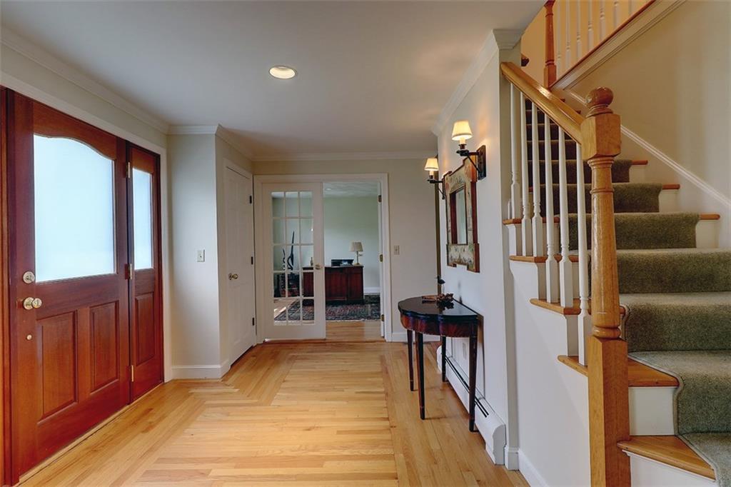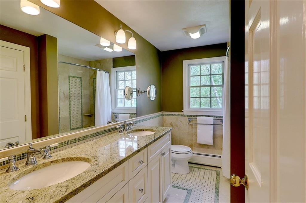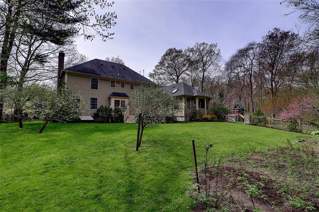 A quiet office and a half bath complete the first floor. Upstairs, the master bedroom suite is an oasis in itself. Complete, with its own sitting room, a large walk in closet with custom built-ins, a cedar closet, and a spa bathroom, this master suite is second to none! Two generously sized bedrooms share a beautifully tiled bathroom with double sinks and granite. A large fourth bedroom suite is privately tucked away and accessed by its own rear staircase, making this suite ideal for guests, in-laws or an au pair. The two car, attached garage is finished with heat and air conditioning. This beautiful home sits at the end of a cul de sac, is walking distance to Nayatt school, East Bay bike path, Barrington beach, the YMCA and The Rhode Island Country Club.
