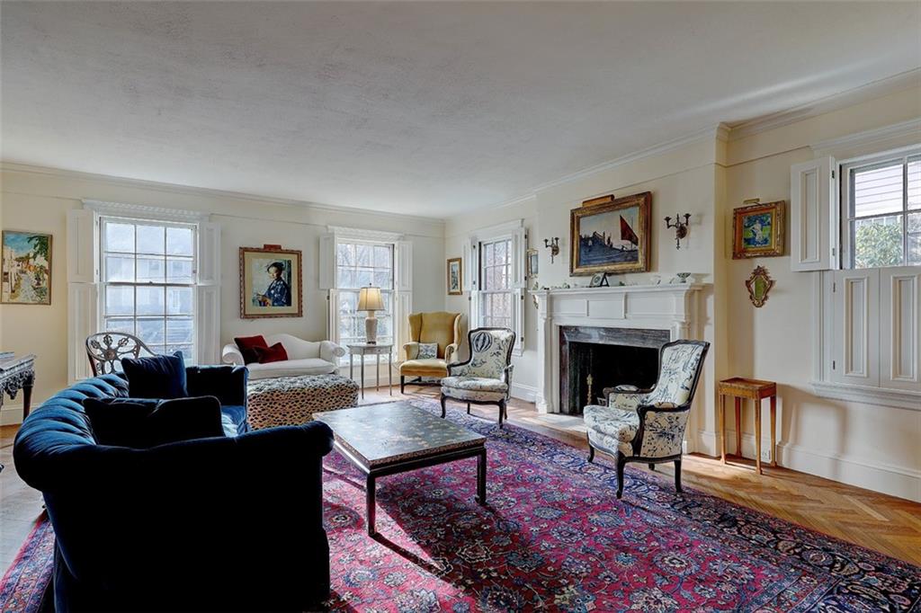 Elegant dining room with french doors leads to a large deck perfect for al fresco dining. The large eat-in-kitchen, with family sitting room, opens to the pretty rear yard. An impressive butlers pantry with additional dishwasher and sink is perfect for entertaining. Two half bathrooms, a coat closet and a convenient 1st for laundry room as well as home office complete this floor. A beautiful staircase leads to the 2nd and 3rd floors with four ensuite bedrooms including a primary suite with sitting room or walk-in closet. An addition 5th bedroom is perfect for a tucked away home office, guest room or craft room. A rare walk-out lower level provides 900 additional square feet of living area for a recreation room or home gym. An integral 2-car garage is accessible through the lower level. A working elevator running from the lower level to the 2nd floor is a wonderful amenity. This home sits in well-preserved Freeman plat, a generously landscaped and gorgeous East Side neighborhood. Walk to Wayland Square, Moses Brown School, Universities, and all the parks, shops and restaurants of the East Side. This home is a true gem.