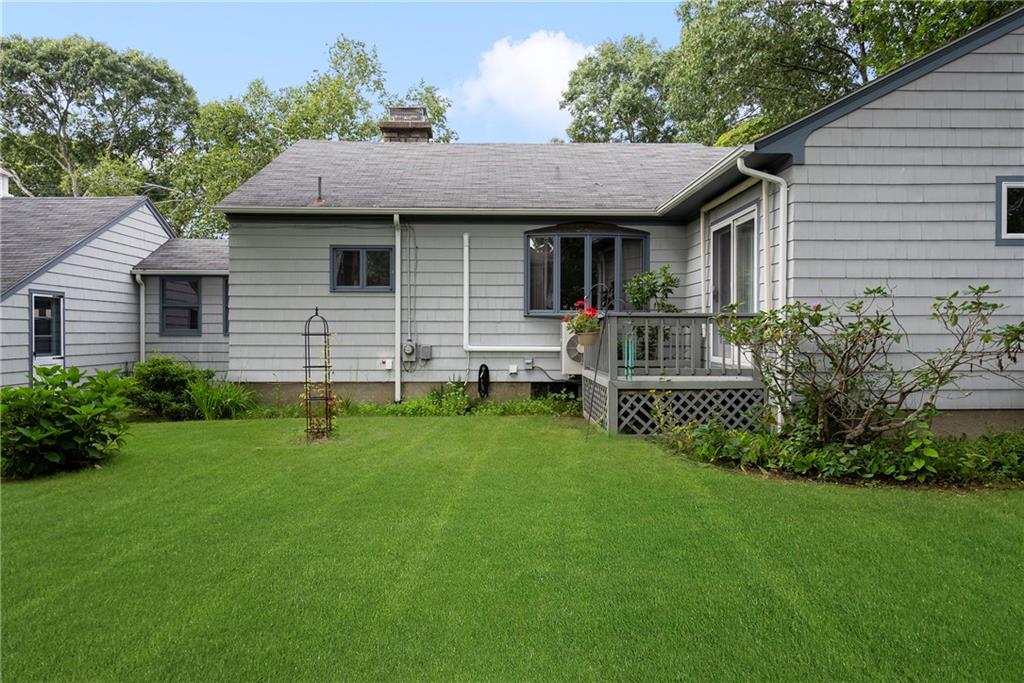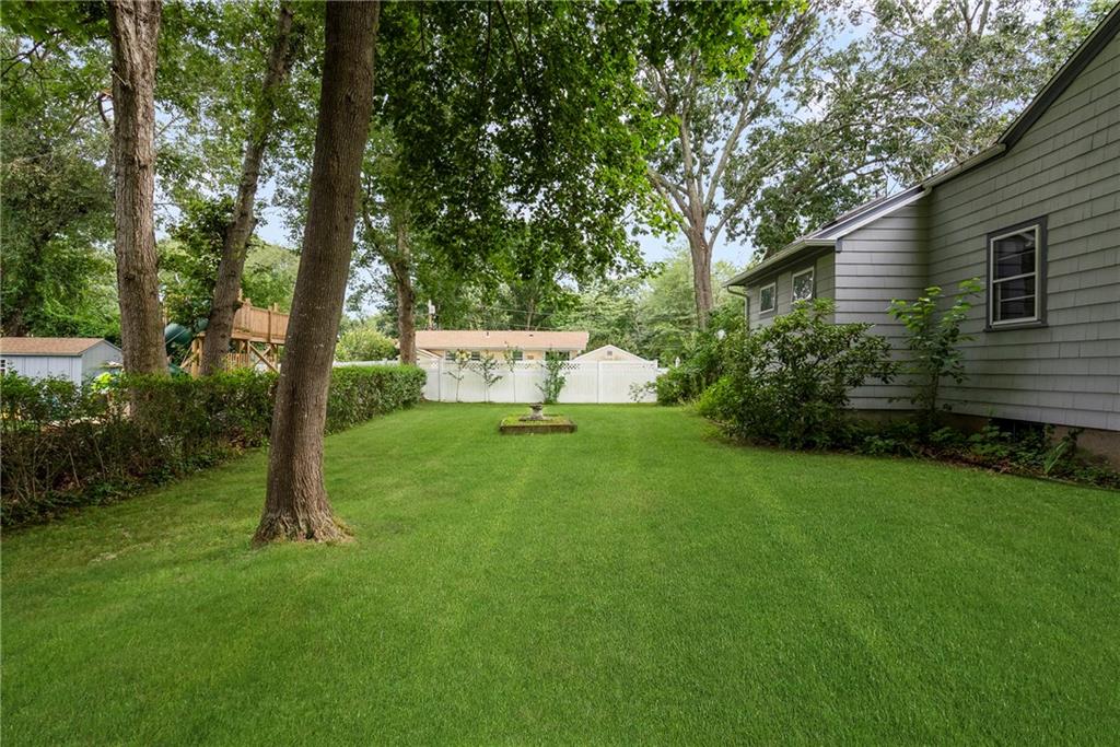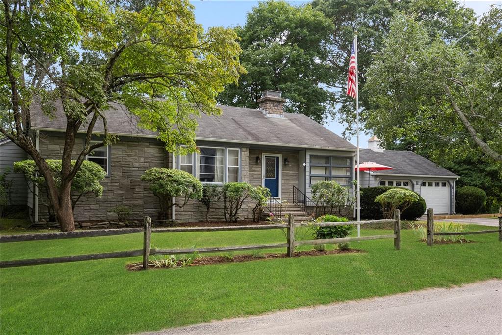 The home offers 2 additional bedrooms and a guest bath as well. Attached garage is an oversized 2 car with direct entry into completely enclosed breezeway or mud room. A full basement provides ample storage or expansion possibilities. The home is sited on a large 15,000+ sq ft lot and is walking distance to Pettaquamscutt Lake Shores Beach and Beach Club and just 5 miles to the Narragansett Town Beach. New furnace. Ductless Air. Town water and sewer too!