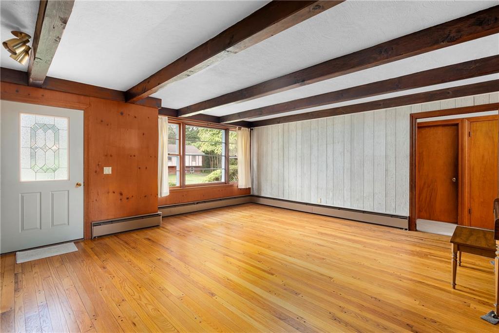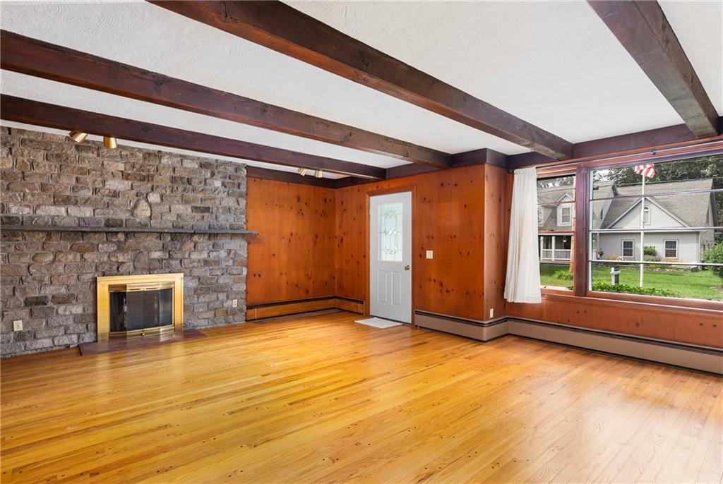 Welcome to this 3 bed, 2 bath ranch meticulously maintained by original owner. Lovely great room with beamed ceilings and beautiful stone fireplace. Sweet kitchen opens to dining room and a light filled sunroom, also with a stone fireplace. Private, primary bedroom suite with full bath is spacious with sliders to awninged deck overlooking private back yard.