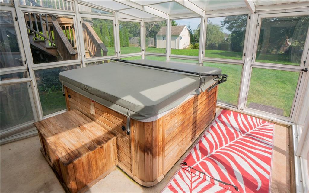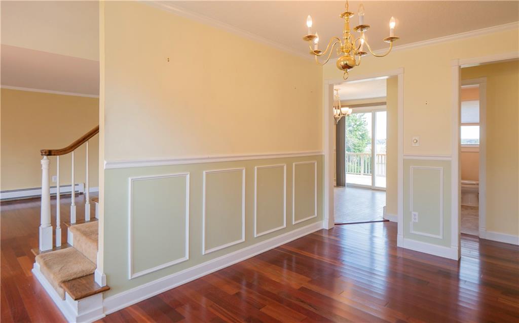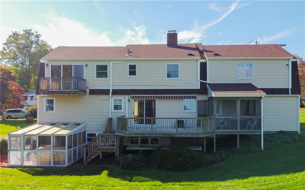 Enter from the front door to a grand staircase and impeccable Brazilian cherry floors. The living room features a pellet stove, built in bookshelves and a cozy corner nook with plenty of light from the Anderson Windows. The eat-in kitchen features ample storage and chair rail molding carrying through to the dining room. Down the hall you have 2 bedrooms, both with brand new carpet and freshly painted. Each floor of this home has a full bathroom. Upstairs is the master suite, a large sitting area with plenty of closet room attached bath, PLUS a private deck with incredible water views. Down the hall you’ll find another bedroom, two bonus rooms , and access to the massive room above the 2 car garage: great for a home office or game room. The finished basement has a bed and full bath, plus a den area with a fireplace, leading to the sunroom with hottub and access to the large yard. The exterior space is just as spacious as the interior, with a screened in porch, shed, and deck off of the kitchen. The house has 200amp electric and is wired for trailer/electric vehicle charging. Don’t miss out on this special home!