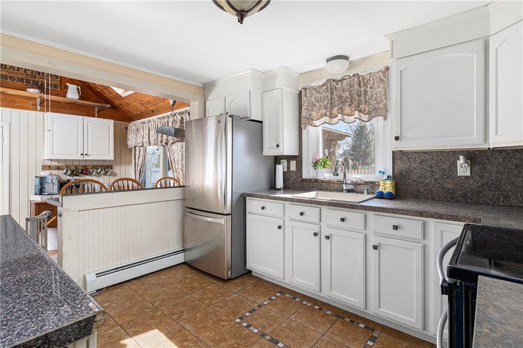 Welcome home to this beautifully updated home off Elmwood Avenue. Updates include crown moldings, chair rails, hardwoods on the first floor, blown-in insulation, remodeled bathroom, newer appliances including stove/oven, dishwasher, microwave and refrigerator, updated electrical and refinished basement. Basement is a plus since it has a bar and plenty of room for entertainment. Exterior updates include newer septic, (overflow timer on it) newer roof, fresh paint on home, patio, firepit, granite steps off the sliders, custom handmade exterior shutters, Copper cupola with a weathervane on the top of the garage and lights up in the evening and on a timer for extra security.