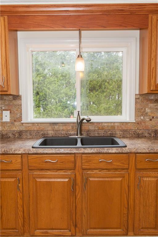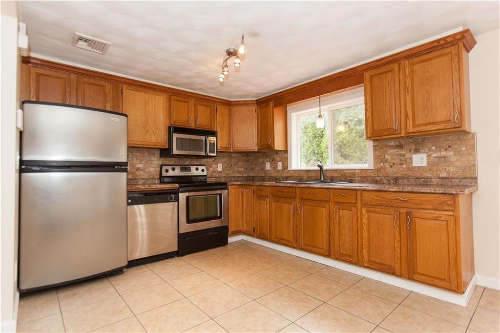 Indoors this home has open kitchen, dining and living plus large bonus room. Lower level is also finished with laundry room and huge rec room. Central AC.