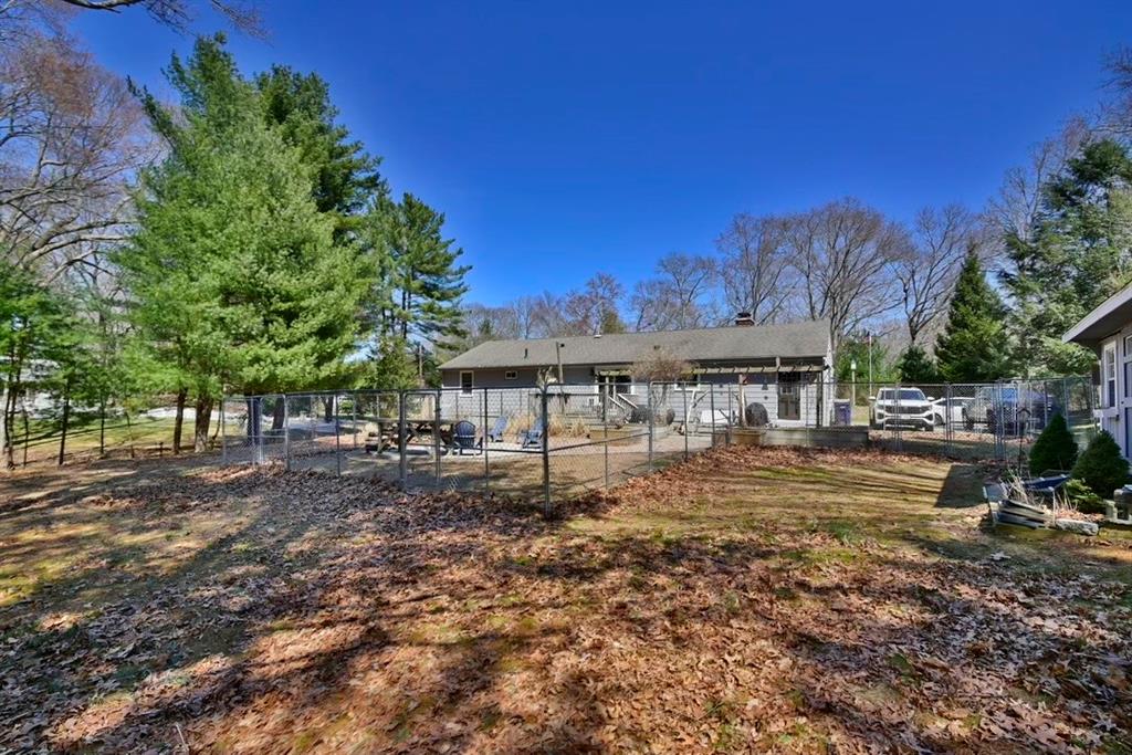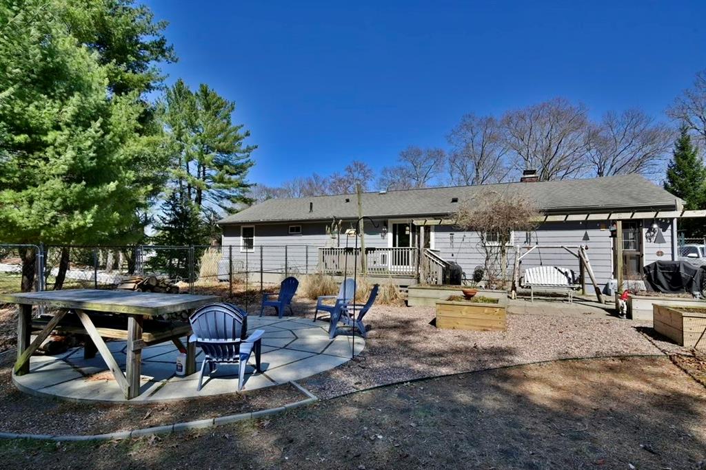 This well-maintained ranch home is nestled on a private .96 acres in the desirable Quidnessett area. Featuring 3 bedrooms, 1 bath, and a half bath in the primary bedroom. A large Family room with a charming brick gas Fireplace a new, less than one year old, insert. Newer eat in kitchen with appliances less than one year old.