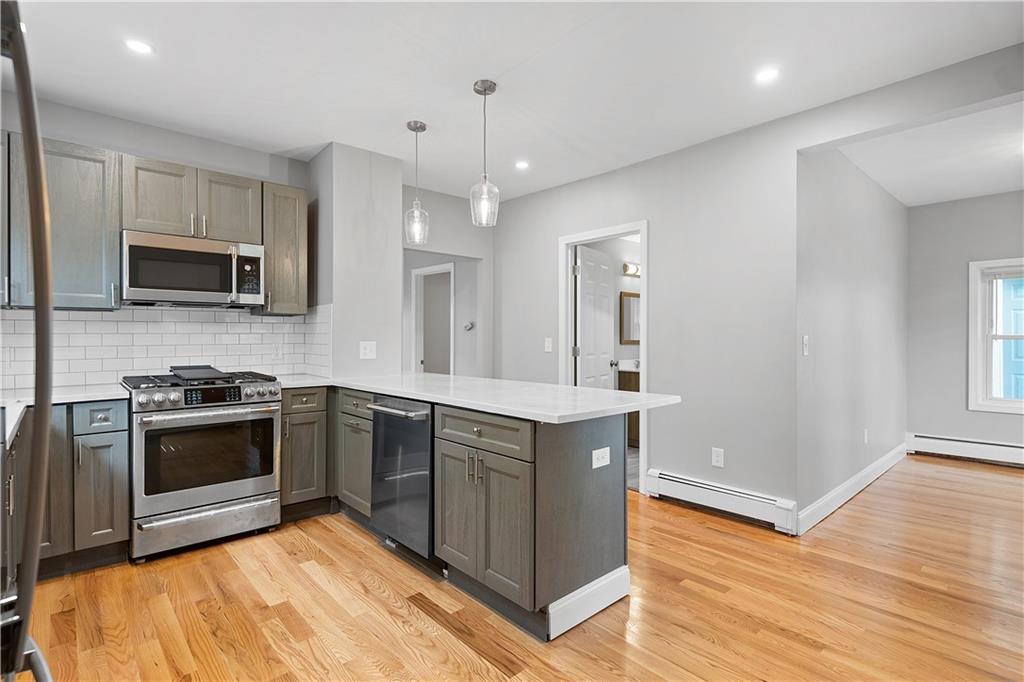 Turn the key ready! This home has been completely renovated. Offering 4 beds/2 baths this home is perfect! Modern kitchen features one of a kind Smoke gray cabinetry, large buffet eat-in dining, glossy white tile backsplash, stunning light pendants, and brand-new stainless steel appliances. The kitchen layout leads to a dining room with a unique light fixture that can sparkle any room, a attractive bathroom with tub & shower, and a staircase that leads to the second floor. Walls are freshly painted with shiny hardwood floors all throughout the abode.