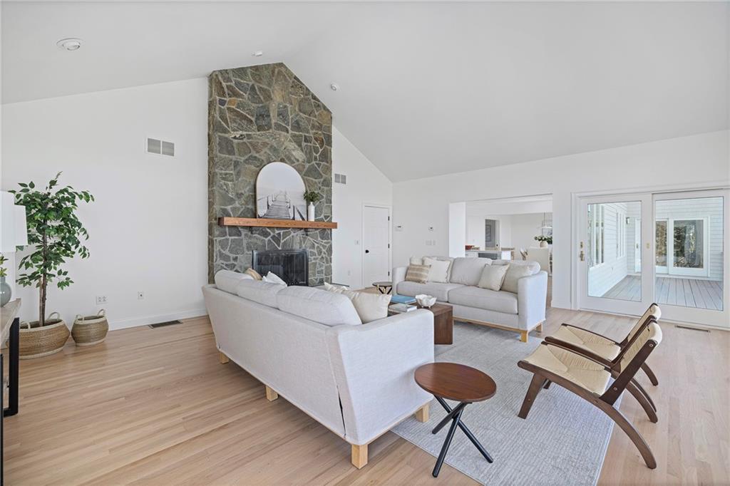 This home is sure to attract guests and family members near and far. The great room with cathedral ceilings and a wall of glass facing the water leading to wraparound decks is ideal for entertaining a large group, quietly enjoying your coffee, or just relaxing as you gaze out at the activity along Narragansett Bay. A family room with cathedral ceilings and floor to ceiling stone fireplace off the kitchen is a cozy and inviting place to relax before and after dinner. The kitchen is a cooks delight with Thermador appliances, an island that seats 5, and windows facing the bay. (Listing includes 1/5 of lot 35 of plat 97; a 0.34 acre waterfront parcel) Conveniently located 1 hour from Boston and 20 minutes from Newport, this home is ideal for year round or seasonal living.