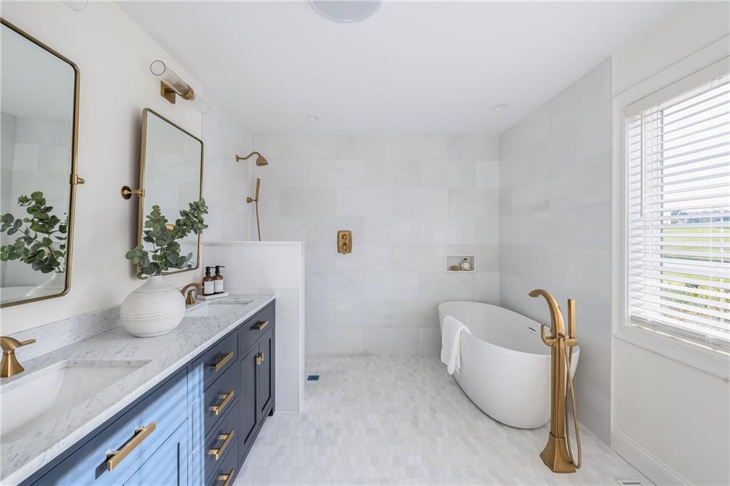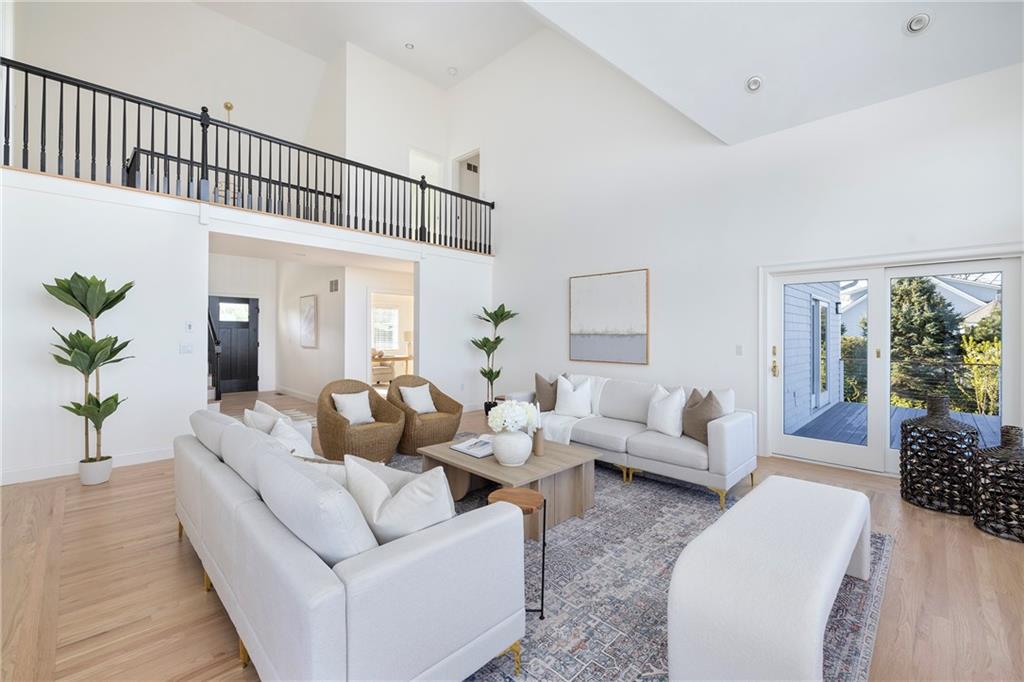 UNASSUMING AND EXCEPTIONAL WATERFRONT RETREAT. This generously sized cape cod has been thoughtfully renovated throughout to create dreamlike waterfront living. Imagine waking up to breathtaking views and ending your day with an incredible sunset. All rooms face the west towards the water: a first floor primary bedroom suite, a second floor primary bedroom suite, a third bedroom with a designated bathroom, office, great room, family room, dining room, kitchen, and finished patio level space with office and bathroom.
