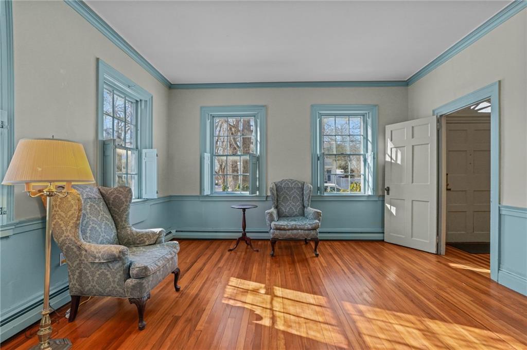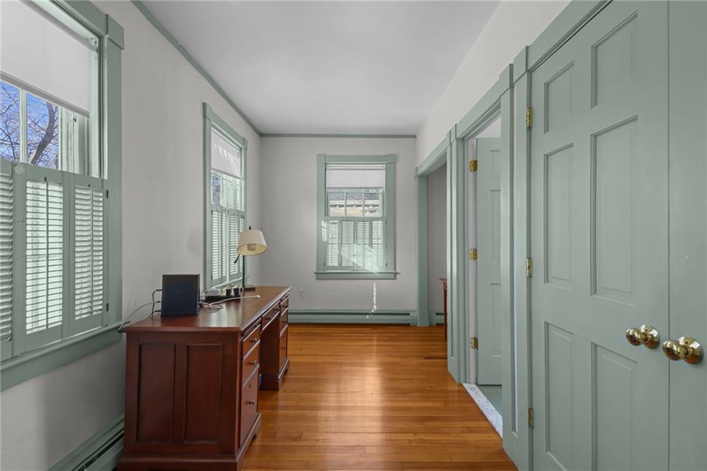 Located in Bristol’s sought after historic district and directly on the famous 4th of July parade route, this quintessential 1811 Federal home is now available for the first time in 25 years! Built for Capt. George Washington Devol and his wife Mary Bosworth, the home is attributed to renowned architect Russell Warren and features one of his striking signature floating staircases (similar to Linden Place and Warren’s own 1800’s home on State St). That staircase is just one of the many gorgeous details found throughout including door, window, and crown moldings, shutters, built-ins, and 7(!) original mantels. 132 High has room for everyone thanks to a gracious center-hall floor plan, 5+ bedrooms and 3.5 baths, providing options for first floor or second floor primary suites plus a potential “in-law”/au-pair suite.