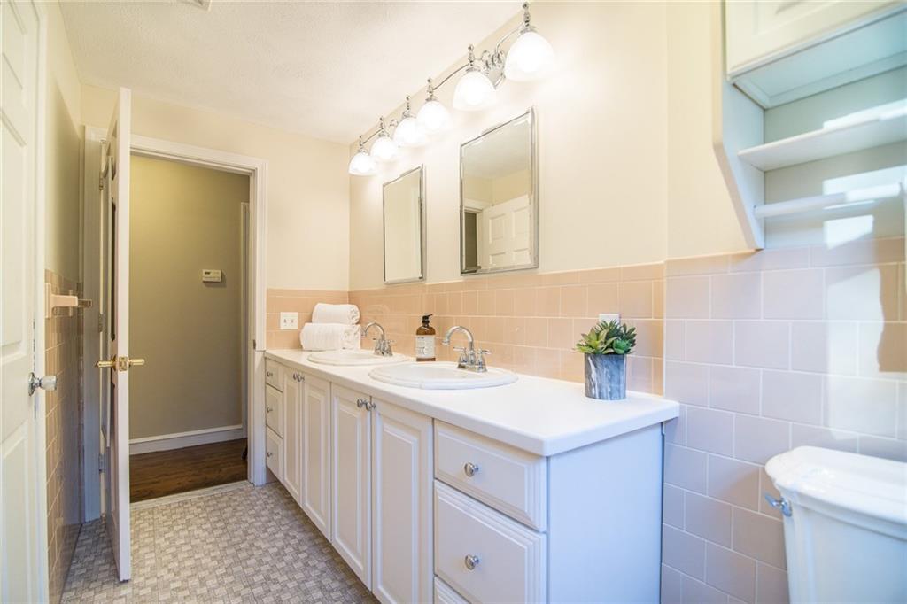 Sunny living room opens to formal dining room. Front to back, fireplaced family room leads to private, covered patio already wired for your flat screen TV! Efficient 1st floor laundry and half bath. Four generously sized bedrooms including huge master with 2 closets and fantastic new bath: double sinks, glass shower with pebble floor. Refreshed guest bath on 2nd. Central Air. Huge, dry basement offers tons of storage and is ready for finishing with nice ceiling height. Enormous 2 car garage with ample space for storage. Well-fed sprinkler system. Flood insurance not required. Pre-sale home inspection – this house is ready for you!