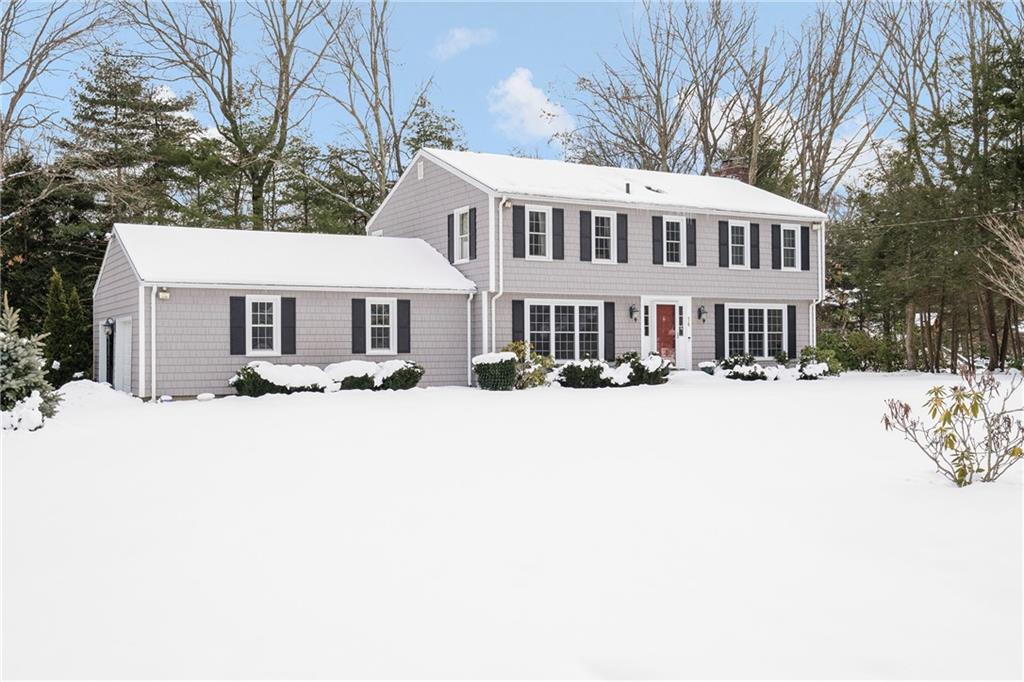 Perfectly Set on nearly 1 Acre in the Tanglewood this Solid 4 Bed 2.5 Bath Moorehead Colonial offers a Front to Back Living Room with Fireplace and Oversized Windows for Plenty of Natural Light; Kitchen with Granite Counters and Stainless Appliances; Huge Private Office with Built-in Shelves; Traditional Dining Room; Laundry Room and Half Bathroom. The second floor has a large Primary Bedroom with a Handsomely Renovated Bathroom featuring a Walk-In Shower; Three Additional Oversized Bedrooms and Full Bathroom. Hardwoods throughout; Updated Windows; Sewers Available; Recently Vinyl Sided; 2 Car Garage; Opportunity for Expansion in the Basement with Rough for additional Bathroom; Wet Bar; Tons of Storage Space. 10 Minutes to TF Green International Airport & Train Station.