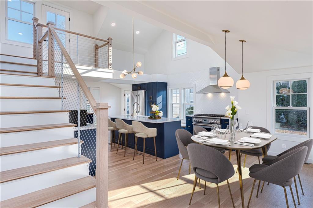 Amazing reimagination of a classic shingle-style cottage totally rejuvenated into a fashionable seaside getaway that also makes a fabulous year-round home! Super cool 3-bedroom & 3 full baths in the heart of The Pier. The sun-filled 2-story eat-in-kitchen is the focal point of this entire restoration! Complete with a full suite of stainless-steel appliances, an expansive quartz center island with seating for five-six, a dry bar with wine cooler, laundry/mudroom, spacious family room with a wall of windows, and bedroom suite with walk-in shower. A large primary suite with walk-in shower & cozy guest suite with tub & shower combination are on the second level. A sweet balcony off the upstairs hallway offers views of the town & peeks of the ocean.