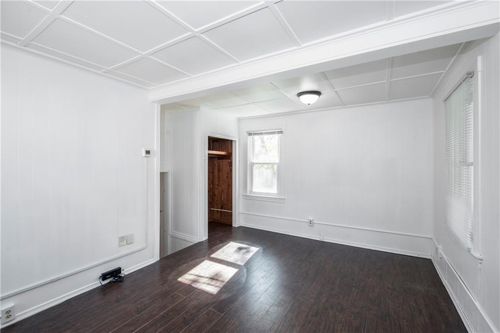 nice amount of square footage in this adorable two bed 1915 cottage. Lovely large, flat, fenced backyard suitable for badminton, croquet, gardening and all sorts of fun and games. Darling sun porch greets and leads you to a not typical, but wonderful layout. Upstairs is a great attic for storage with two windows for light.