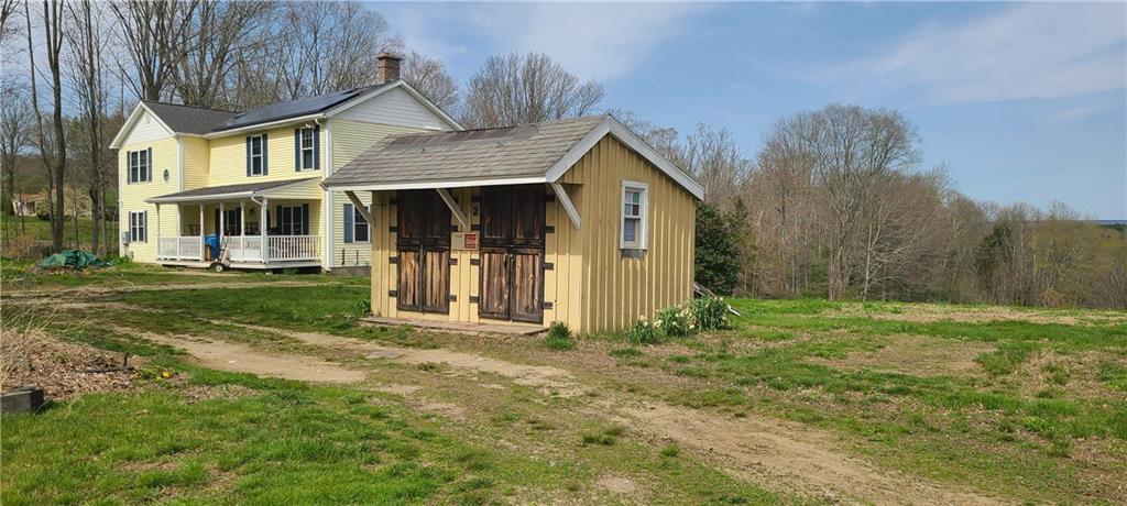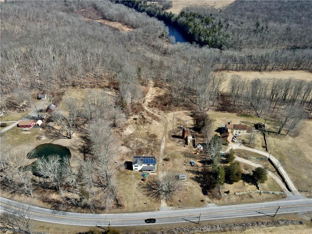Colonial home situated nicely with sounds of nature on 20 Acres bordering State of Connecticut land contiguous 160 acres + along the Quinebaug River. Colonial home completely rebuilt from foundation up features 3 bedrooms(potential for 4th bedroom on main level near full bath), 2 full/1 half bath, with 3 heat/energy sources, oil, solar and wood. Hardwood flooring, tile and granite already in place. Solar lease to convey along with security system equipment.
