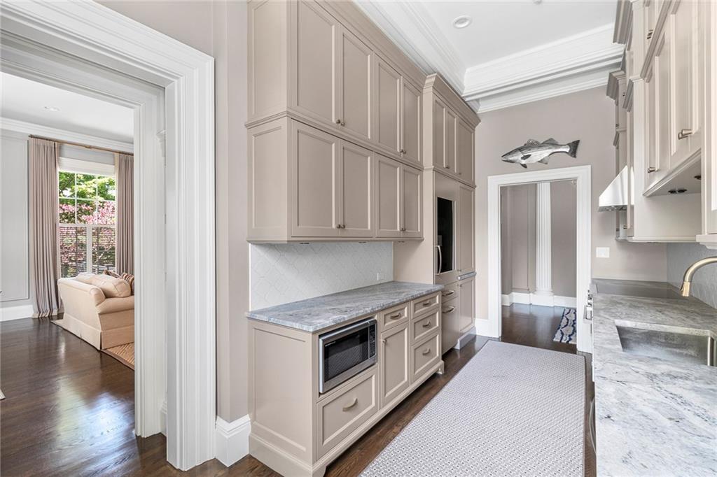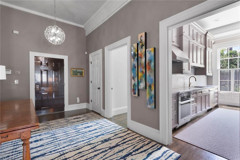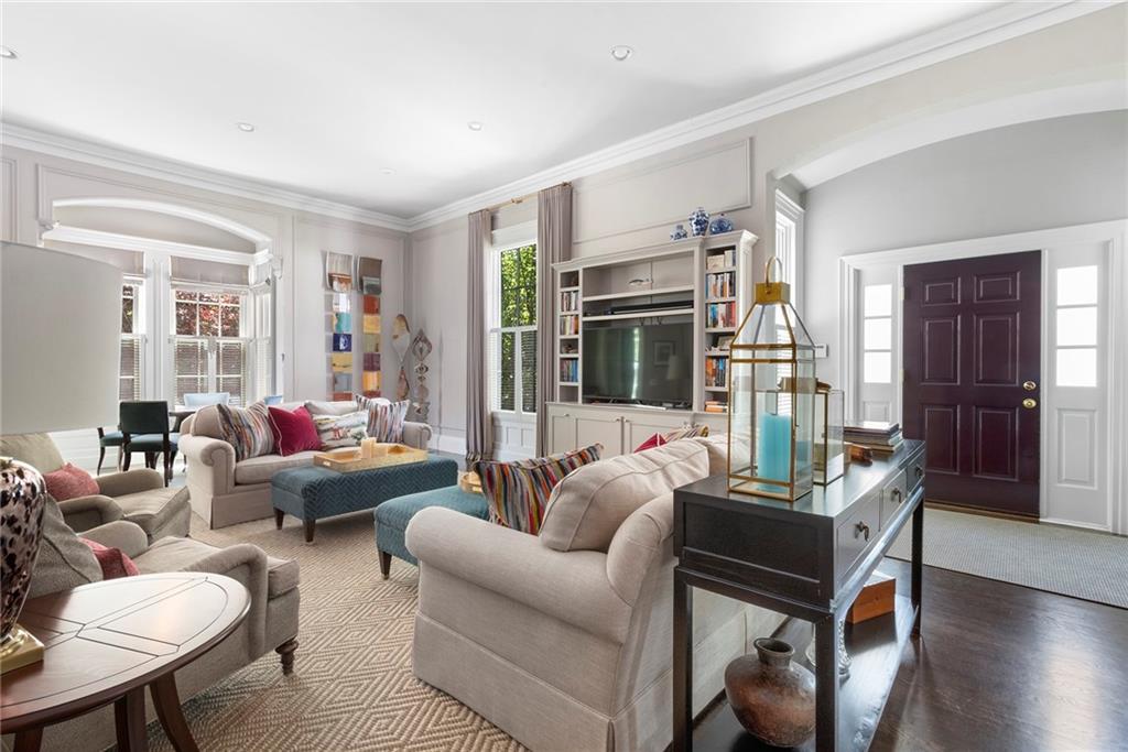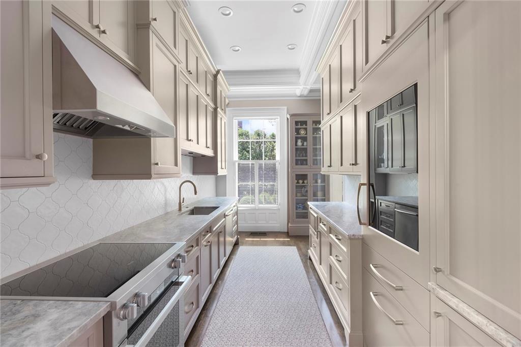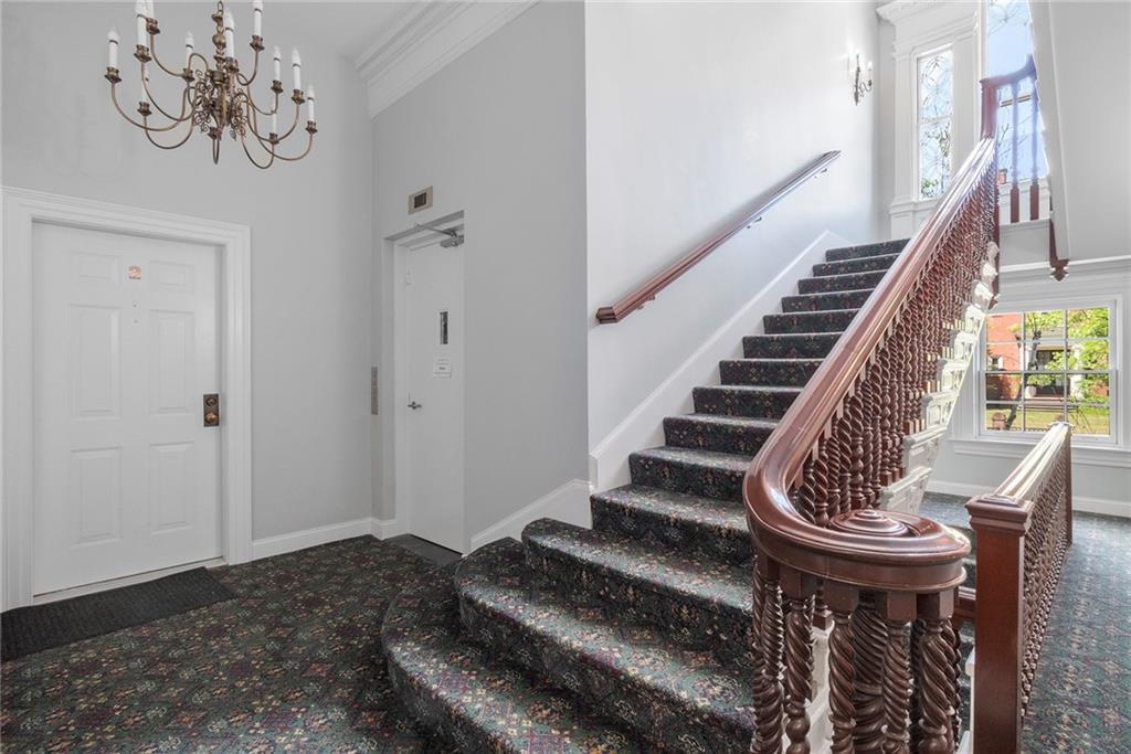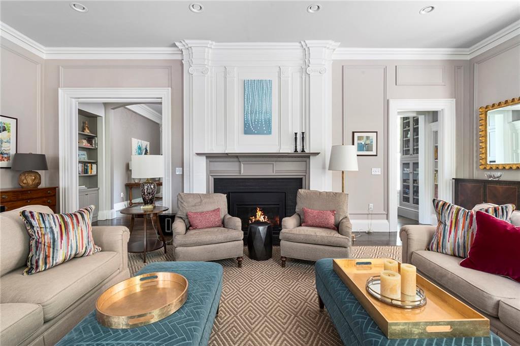Located in the coveted Gammell House, this renovated, 1st-floor unit with a private entrance and an elevator, provides beautiful, single-floor living. A sunny, open feel is enhanced by Pella double-hung windows and 11-foot ceilings. Refinished hardwood floors and new lighting are present throughout the floor plan, including the Thompson Woodworking & Design custom kitchen with granite countertops, a porcelain tile backsplash, hooded Miele induction range, & GE Monogram refrigerator. A combined living/dining room features an impressive fireplace and custom built-ins, while an outdoor patio lets you dine alfresco along the drip-irrigation garden showcasing knock out roses, climbing hydrangea, & blue princess holly.