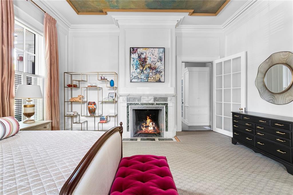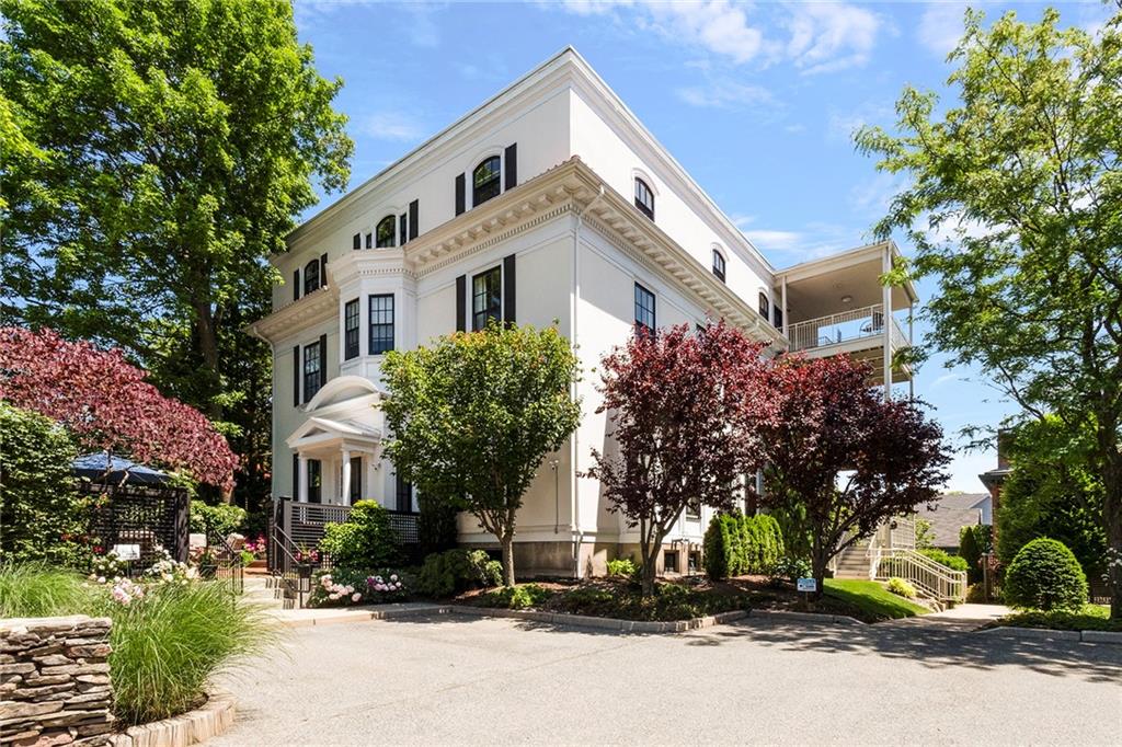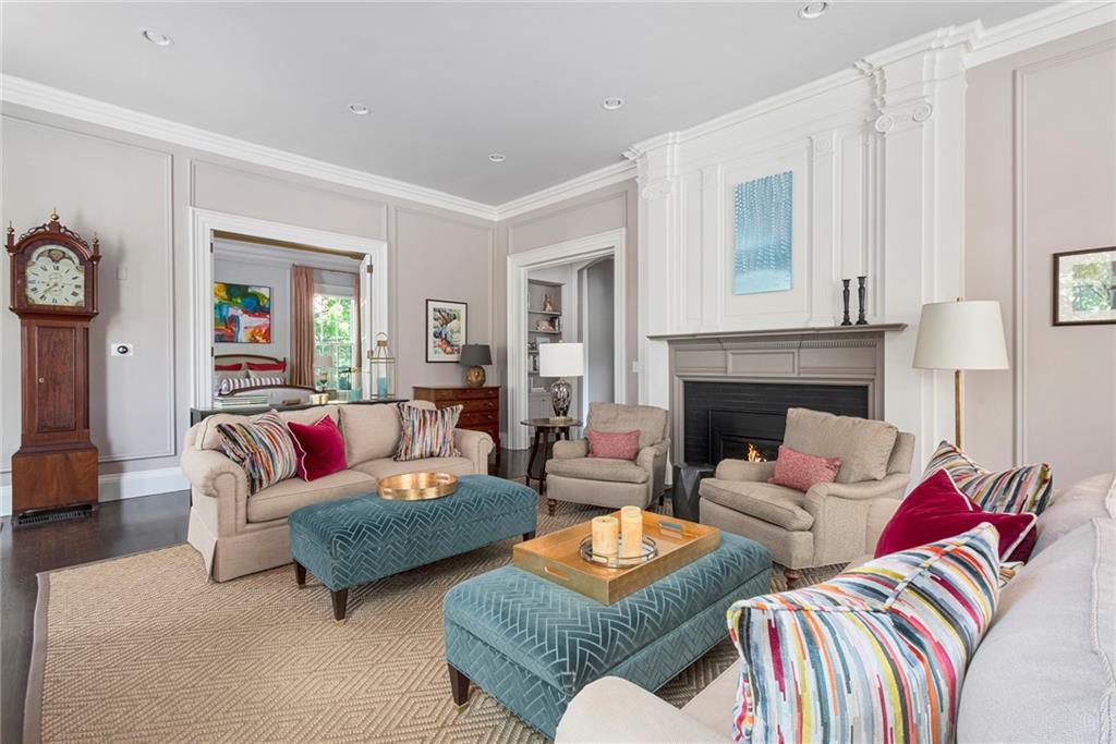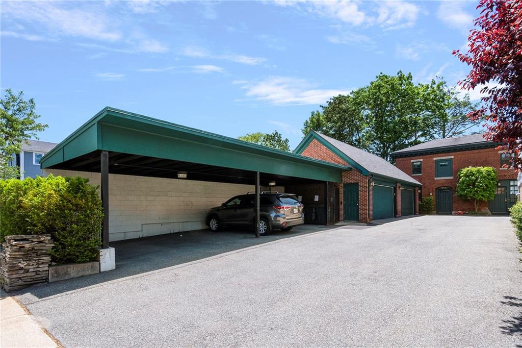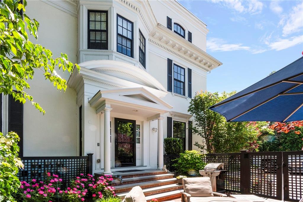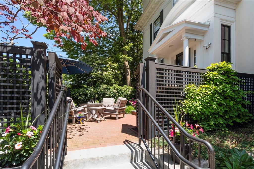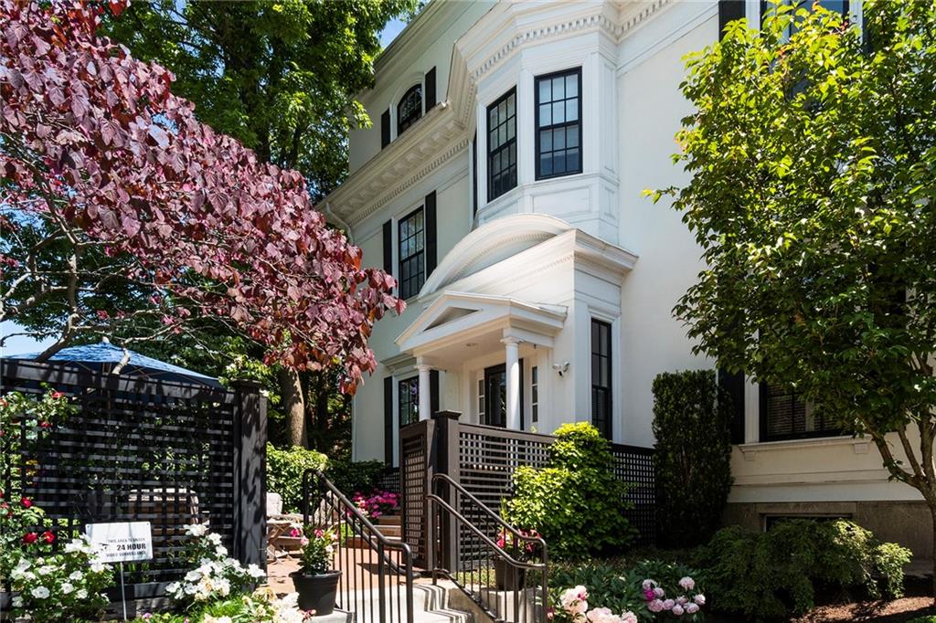 The primary suite adds romance with its fireplace and ceiling art by master muralist Edwin Blashfield. Its custom ensuite bath provides French doors, granite countertops, an Amerec WiFi steam shower, and an Electrolux washer/dryer. Guests delight in their own suite with private bath. Ring exterior security cameras add peace of mind, while two-car, deeded parking, including one covered spot, lets you stow your vehicle and enjoy the walkable neighborhood. The property is equidistant to lively Thayer St. and Wayland Sq. Local parks, Blackstone Blvd, college campuses, & the pedestrian bridge connecting to downtown add up to enviable city living. Easy commutes to Boston & New York are found at the downtown train station. (Priced as furnished, 90 day closing preferred).