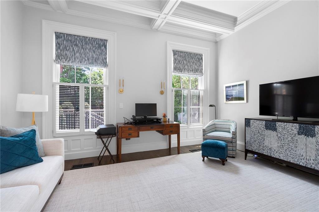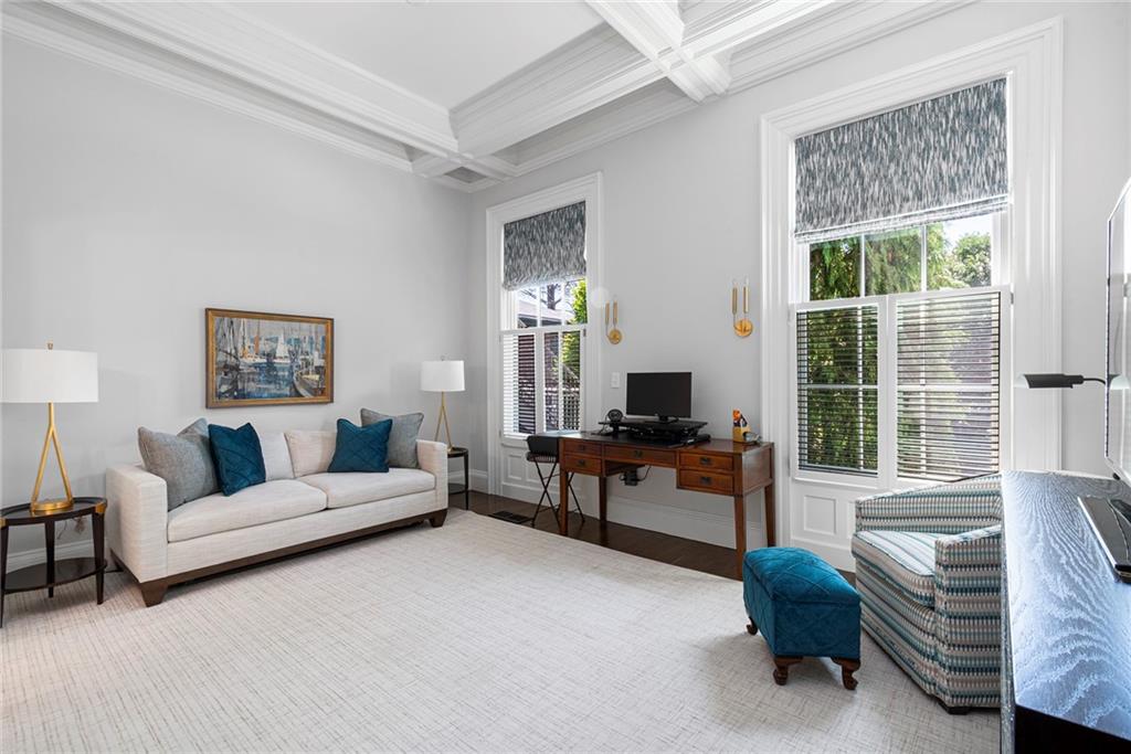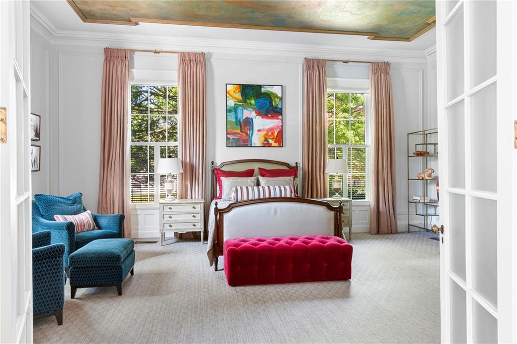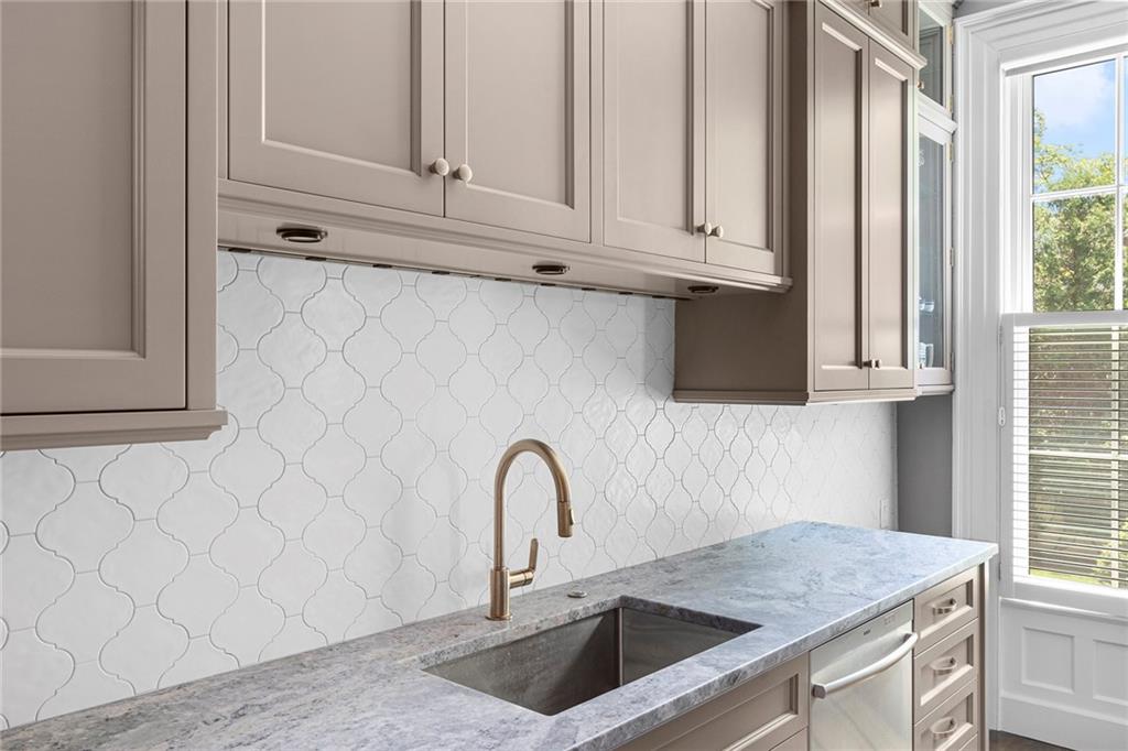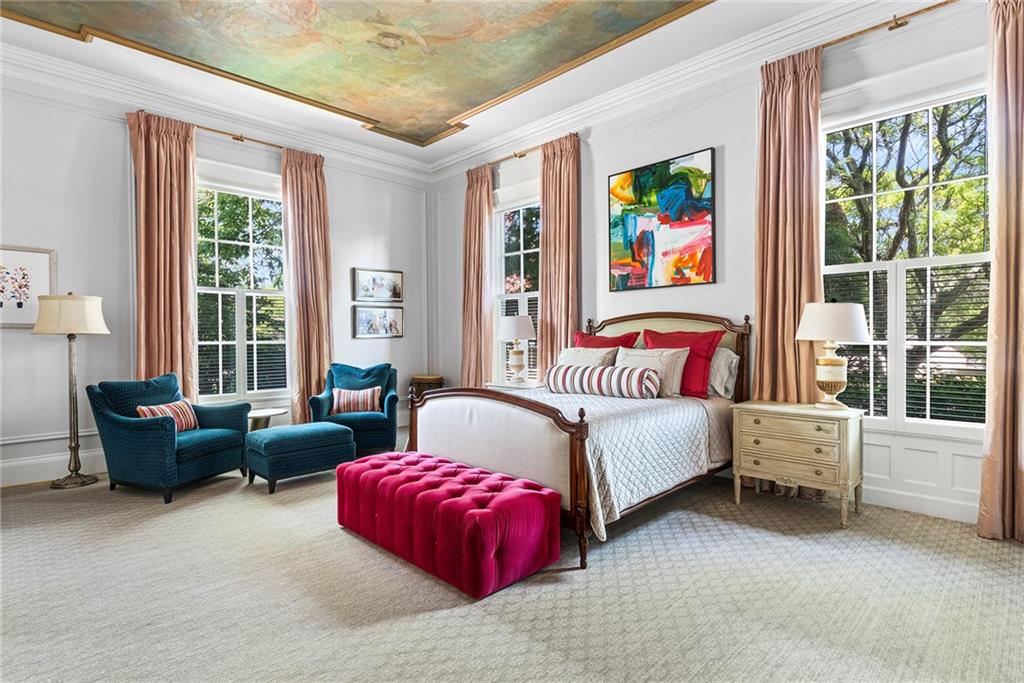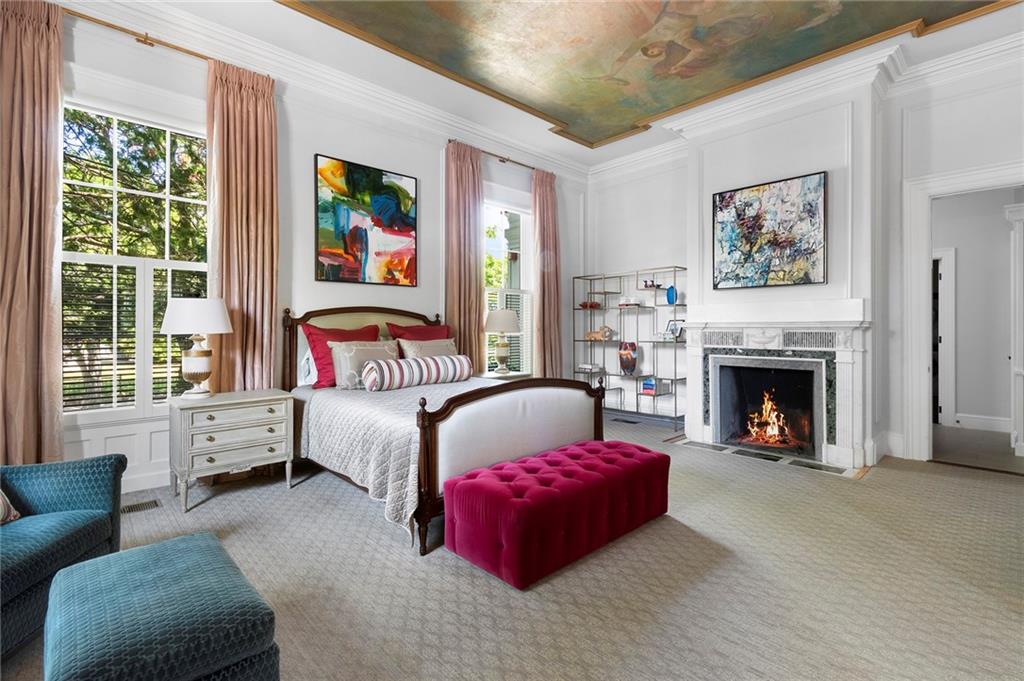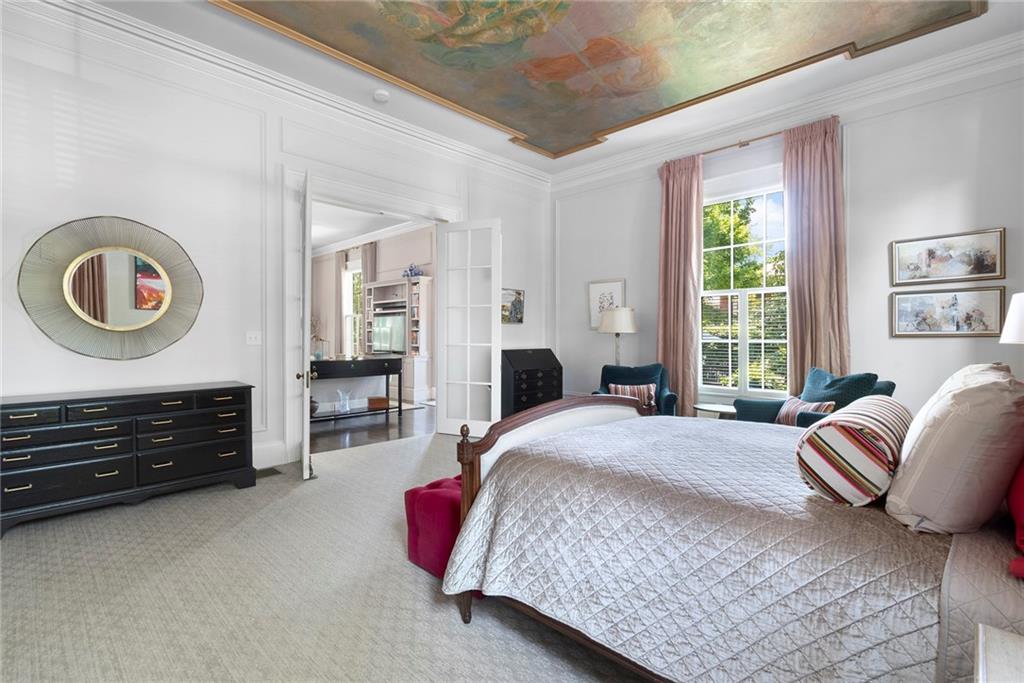 The primary suite adds romance with its fireplace and ceiling art by master muralist Edwin Blashfield. Its custom ensuite bath provides French doors, granite countertops, an Amerec WiFi steam shower, and an Electrolux washer/dryer. Guests delight in their own suite with private bath. Ring exterior security cameras add peace of mind, while two-car, deeded parking, including one covered spot, lets you stow your vehicle and enjoy the walkable neighborhood. The property is equidistant to lively Thayer St. and Wayland Sq. Local parks, Blackstone Blvd, college campuses, & the pedestrian bridge connecting to downtown add up to enviable city living. Easy commutes to Boston & New York are found at the downtown train station. (Priced as furnished, 90 day closing preferred).