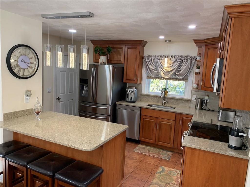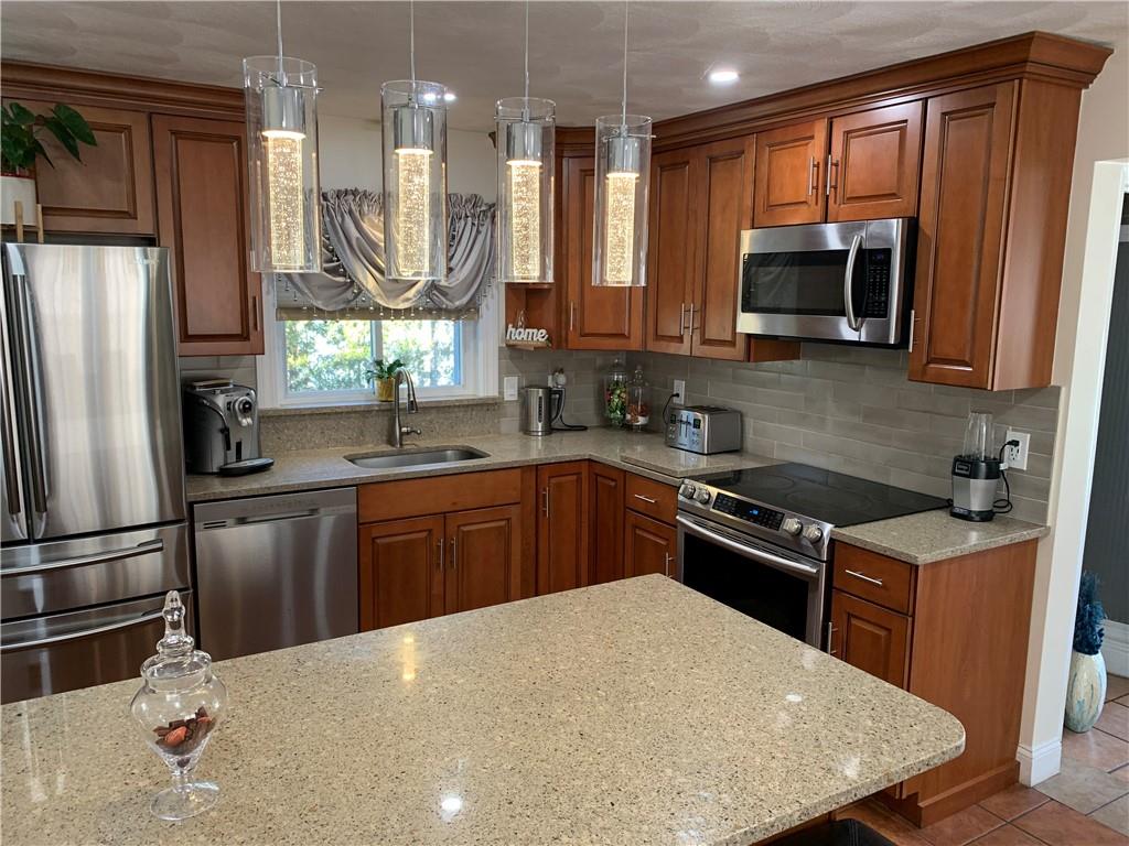 Welcome to Kent Heights. This Home has so many wonderful features including spacious living room, new kitchen cabinets w/quartz counters and breakfast nook, new SS appliances, gorgeous pendulum lighting fixtures, spacious living room & dining area. Interior is freshly painted. It also offers 3 Bedrooms on second floor w/ new hardwood floors , full baths on each level.
