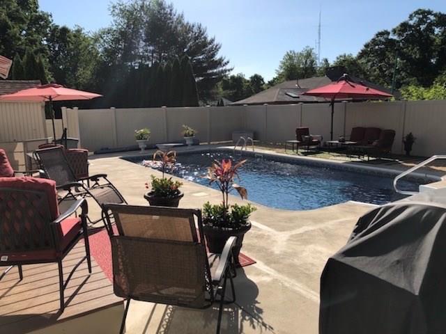 Front to back living area features a soaring ceiling with an inviting kitchen /dining area, and sliding glass welcomes you out to the pool and patio.