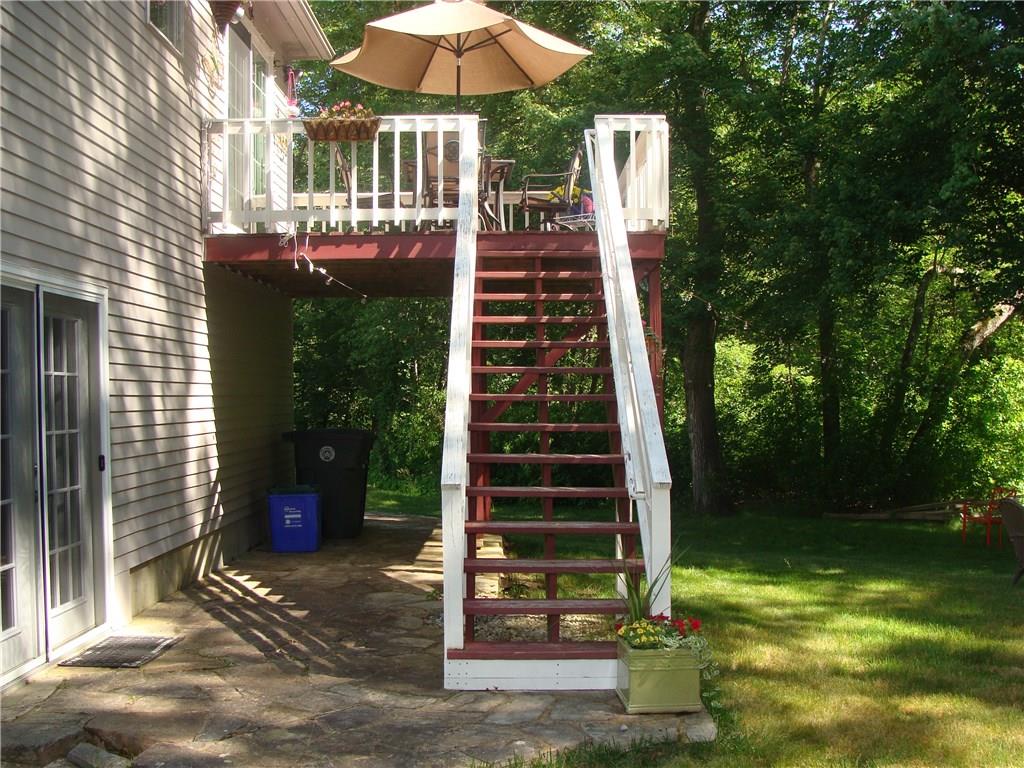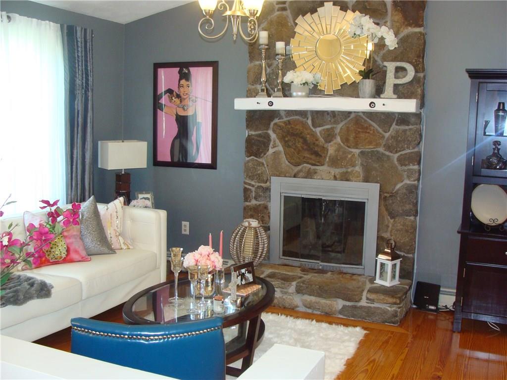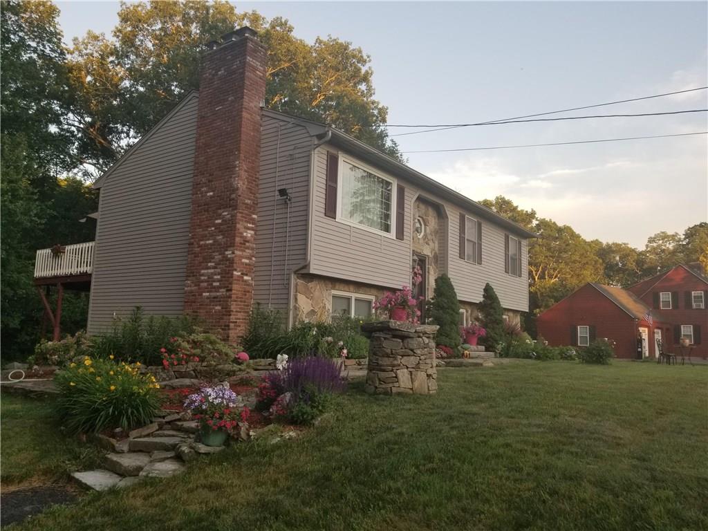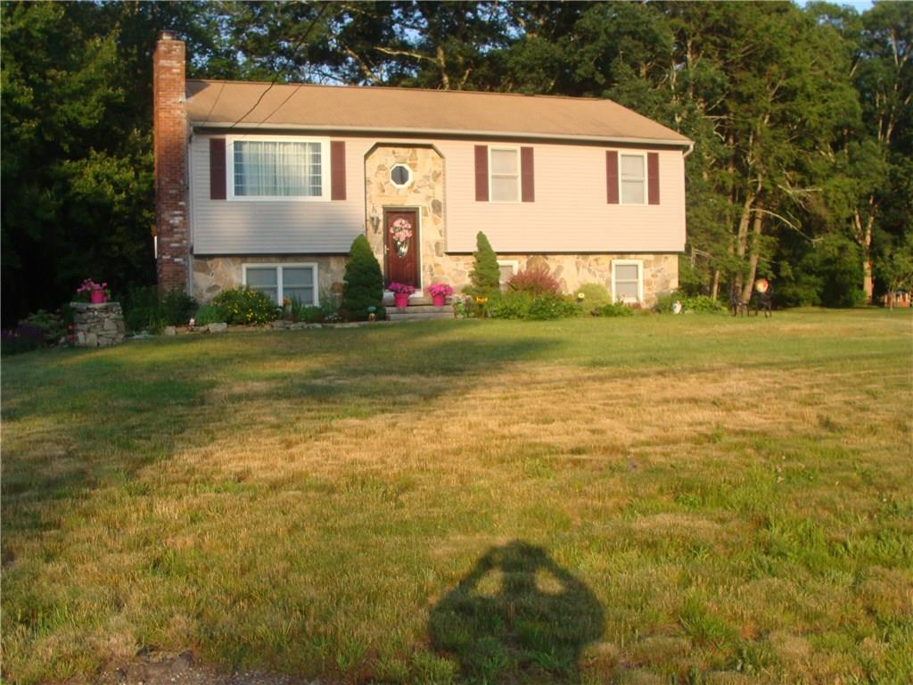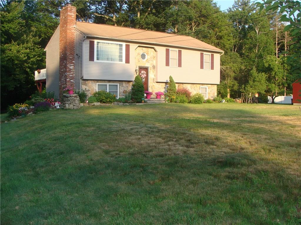 Charming private living, gaze at farm land across the street, walk to pond in rear of property this open floor plan , offers masonry. stone work, custom layout, walk out on lower level, updated windows and doors, contemporary bathroom, slider to deck, granite kitchen with center island, three sided clapboard, set back from the street, bamboo flooring, laundry in lower level, family room in basement great for entertaining. office or exercise space as well, fire pit in back yard