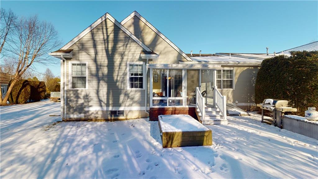 Welcome 170 Providence Pike, Unit #67 at Laurelwood – a 1,816 sq. ft one level condo in Northern Rhode Island’s Premier 55+ community surrounded by the beautiful North Smithfield landscape!!! Entering the covered front entry which leads into the living room with marble gas fireplace and dining area with hardwoods throughout. Further in, you’ll find the kitchen fully equipped with stainless appliances and eat-in area. Leading to the sliding doors, a bright and enclosed florida room awaits you and the private backyard.