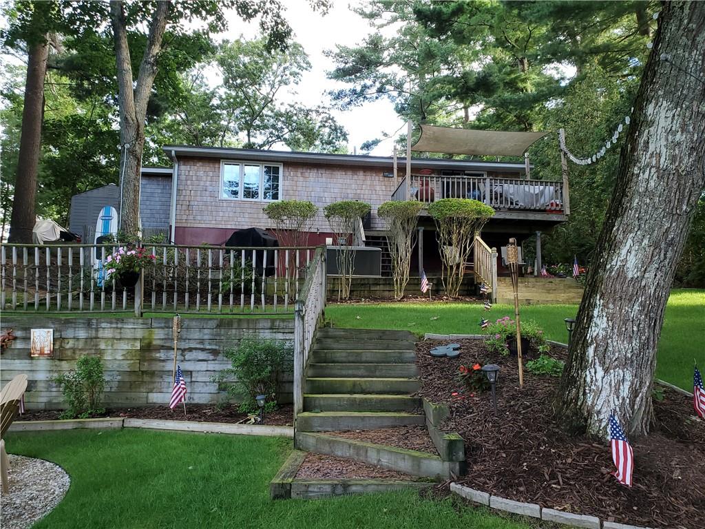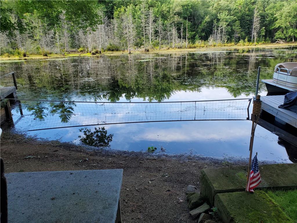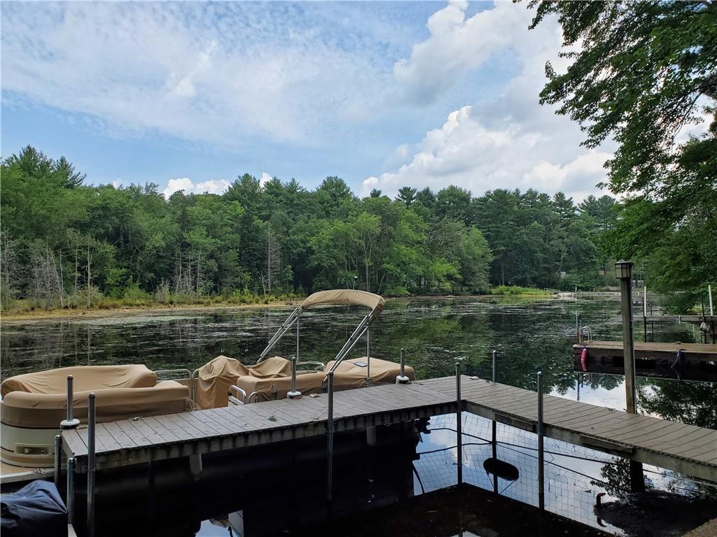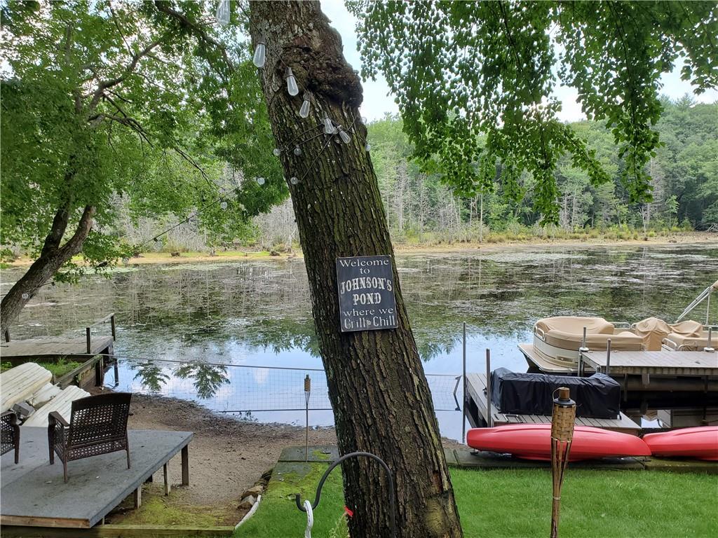 WATERFRONT on JOHNSON’S POND. Immaculate 2 bedroom, 1 bath with open kitchen, dining and living room. Sliders to rear deck with a beautiful view overlooking the water. Walk down a few stairs to next level patio.