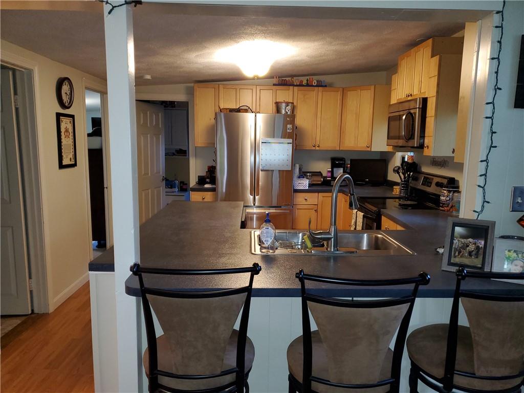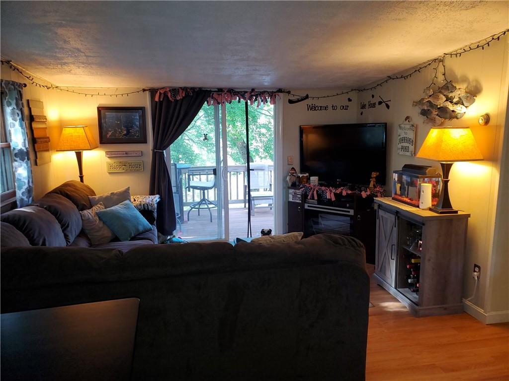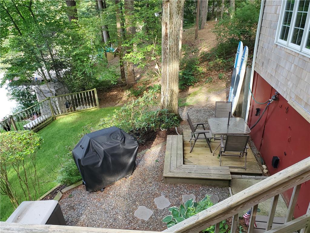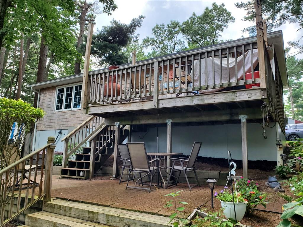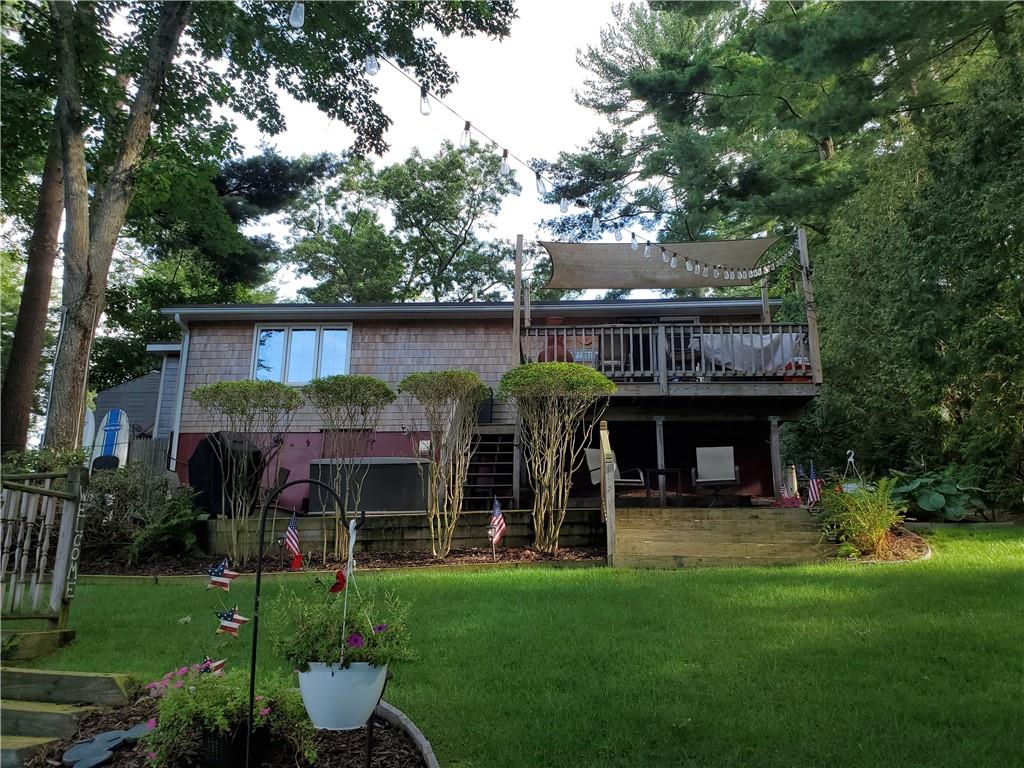 WATERFRONT on JOHNSON’S POND. Immaculate 2 bedroom, 1 bath with open kitchen, dining and living room. Sliders to rear deck with a beautiful view overlooking the water. Walk down a few stairs to next level patio.