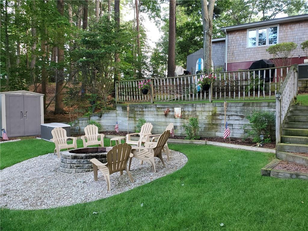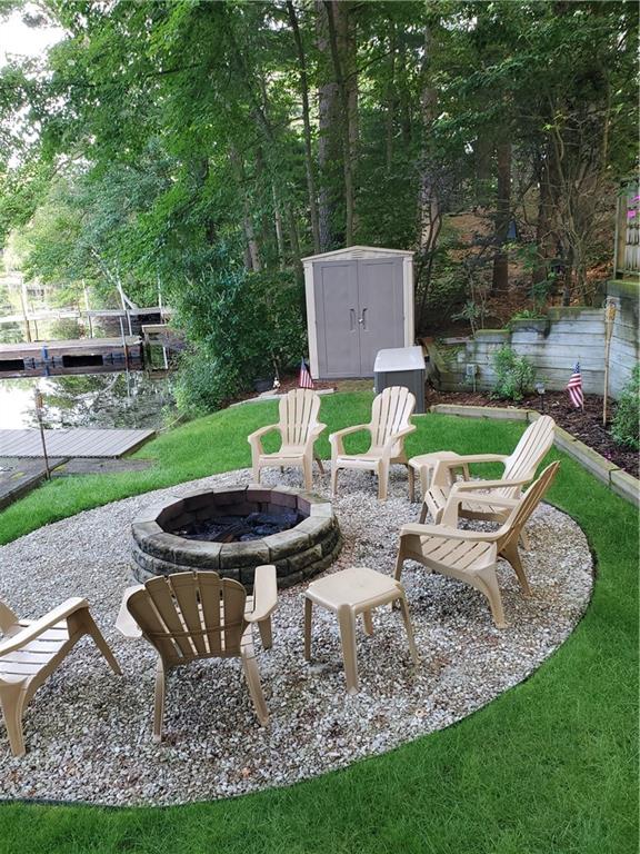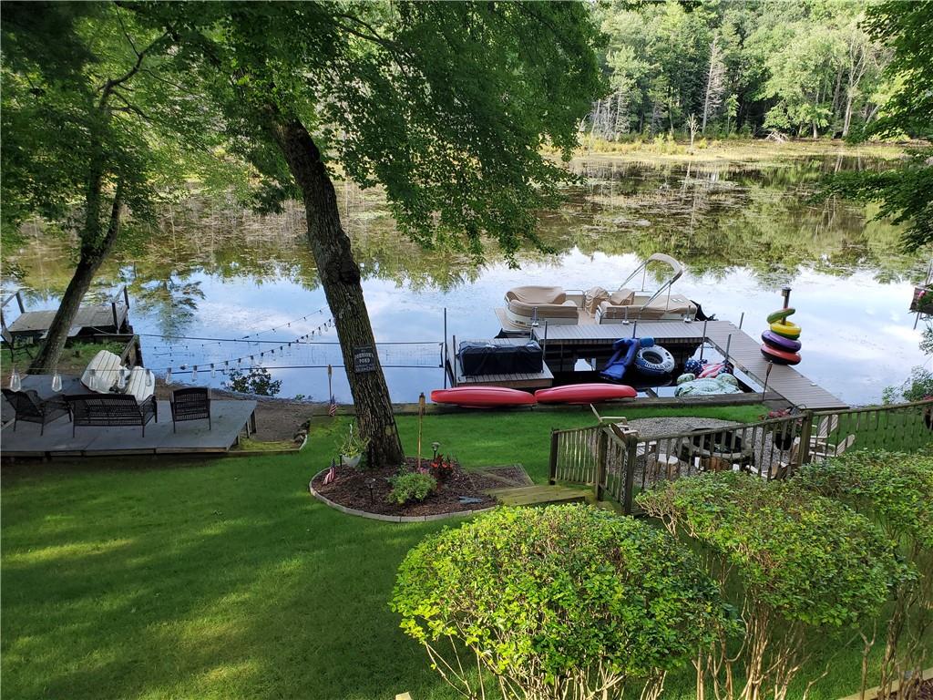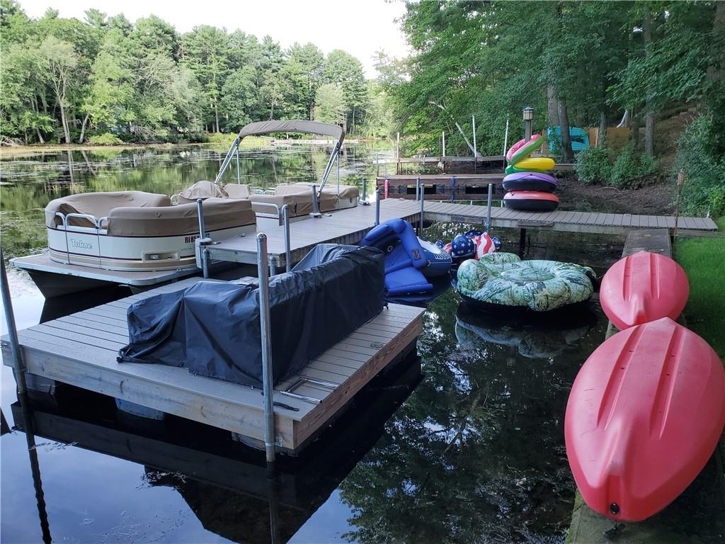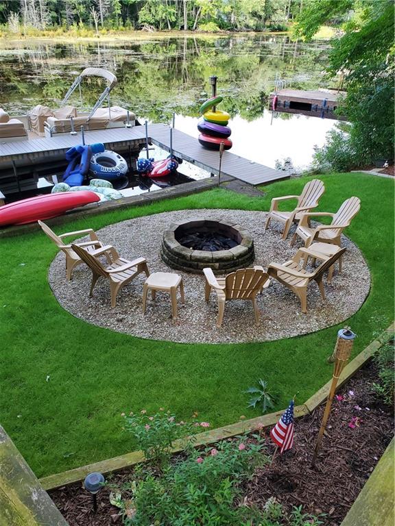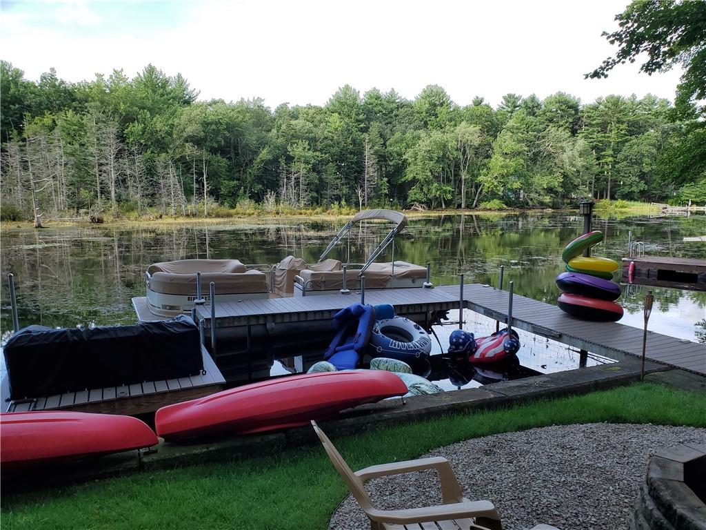Then walk down a little more to the waterfront, firpit and docks. New poles installed on dock and an additional floating dock. Another platform for sitting in the shade and smaller sheds for storage. Off the beaten zooming pond but still has easy access for all the fun with the toys you may have or want to enjoy. Year round living.