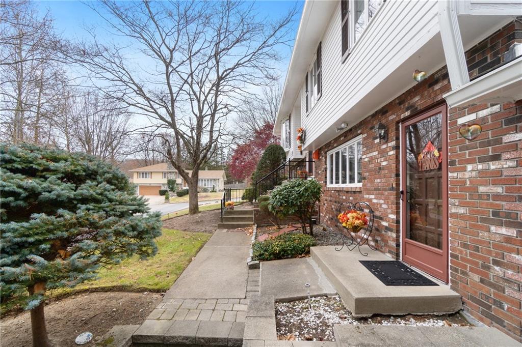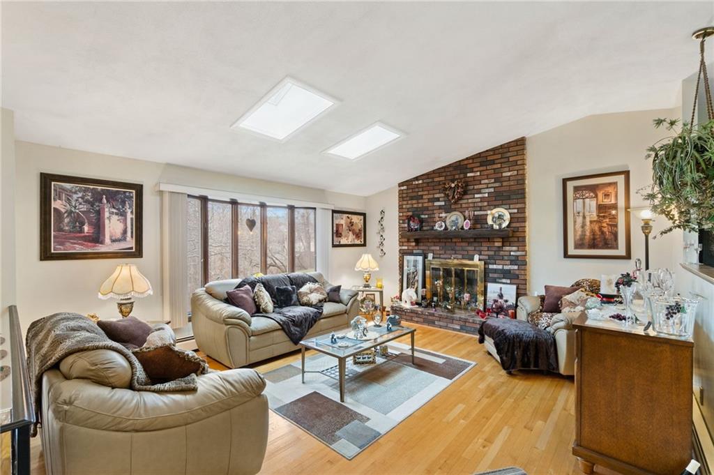 Pride of ownership shows in this 3 bed 2.5 bath home located in a Great location; private and quiet neighborhood, close to highway access and local shops. Some updates include a newer roof, gutters, refinished deck, sliding door and water heater. Drive up to the meticulously maintained corner lot with 2 driveways and a 2 car garage. Walk in to an inviting living room with cathedral ceiling and brick fireplace.