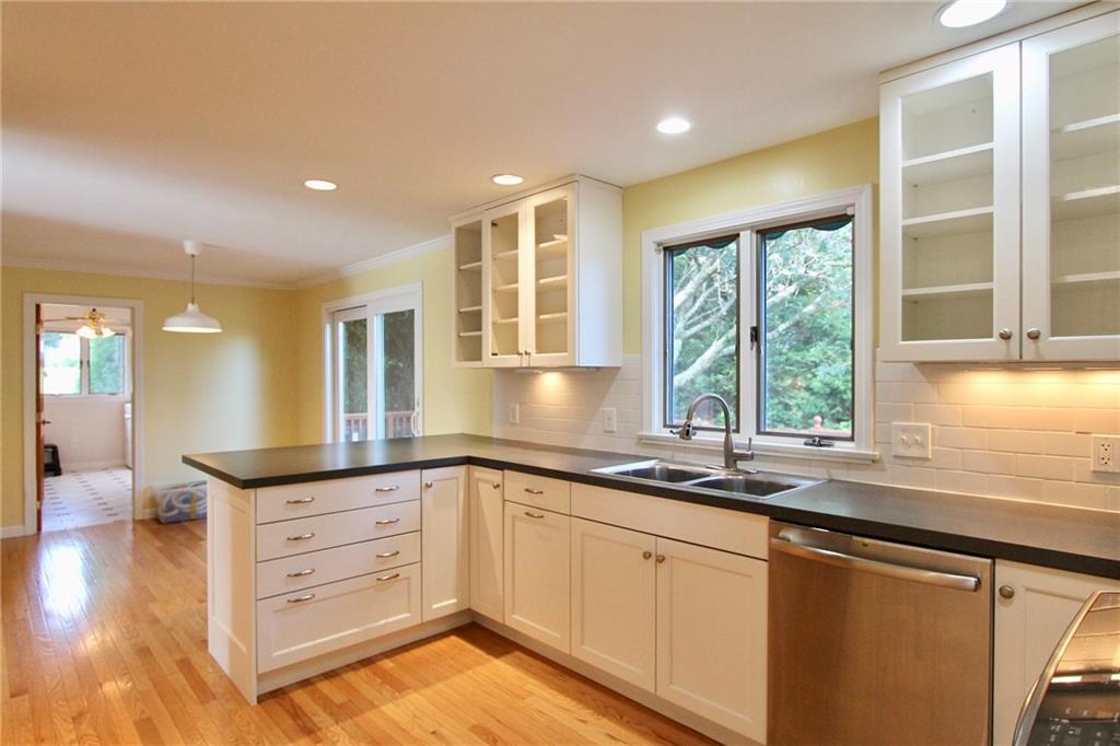 Privacy in Sandy Point – Enjoy watching the sunrise over the Sakonnet Passage! Beautifully set back off the street sits this four bed, two-and-a-half bath Cape with plenty of living space for today’s living. Renovated designer kitchen with stainless appliances, hardwoods on the first floor, new on-demand high efficiency heating system, central air, and great back deck are a few of the residence’s features. First floor mudroom and laundry with entrance to backyard provide ease for access. Two generous sized family rooms, one with wood-burning fireplace, eat-in kitchen, and dining room offer plenty of entertaining space.