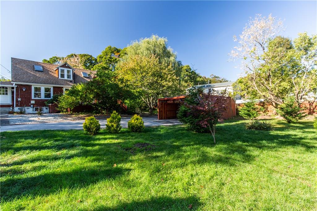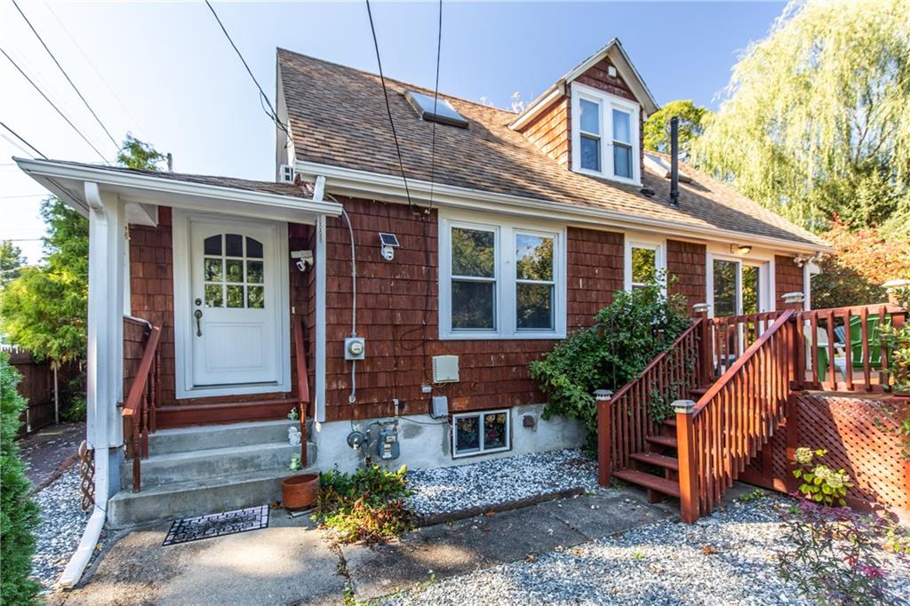 Welcome home to Oakland Beach. This lovely cape home sits on an amazing triple lot filled with stunning year round landscaping. Pride of ownership is apparent in this two bedroom, 2 bathroom featuring a large living room, kitchen, dining room and bathroom on the main level; 2 upstairs bedrooms and a bathroom and a partially finished basement. An enclosed front porch and a large side deck easily expand the footprint of this home.