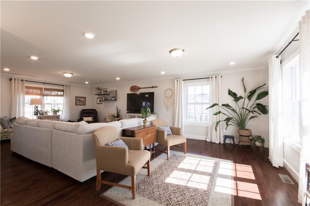 Welcome to 19 Sloop Drive located in Bristol Ferry Landing, an established Portsmouth neighborhood conveniently located to everything on Aquidneck Island as well as quick access to downtown Bristol and points north on Route 24. This nearly new construction was built in 2017 and has so much to offer. Upon entering this home, you will find gleaming hardwood floors throughout the first level. The large front-to-back living room opens into a dining area and chef’s kitchen with a stand-alone island to seat five.