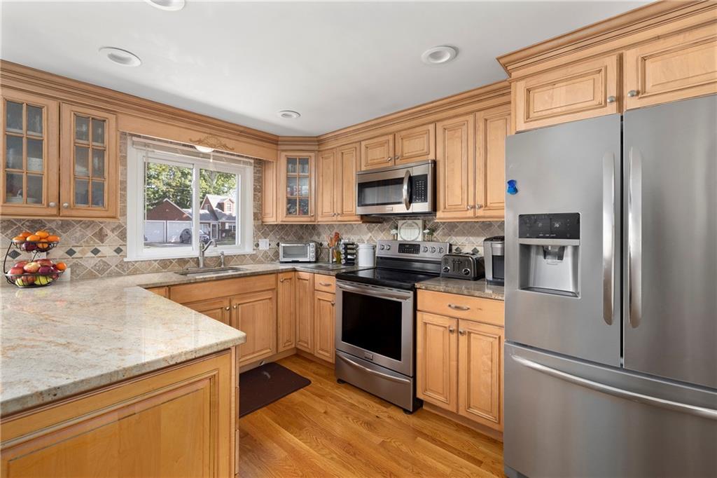 The entire house features gleaming hardwoods, 3 year old windows and updated lighting. The expansive living room makes way for not only a giant living room set for the game nights and sports events, but also for multiple designated spaces for those still working from home and in need of a office area. A/C will keep you cool all summer and the fireplace will add that cozy feeling on those cold winter nights. Outside you will find a spacious backyard with a phenomenal patio and fireplace to entertain guests for decades. Come see this beautiful home before it’s gone!