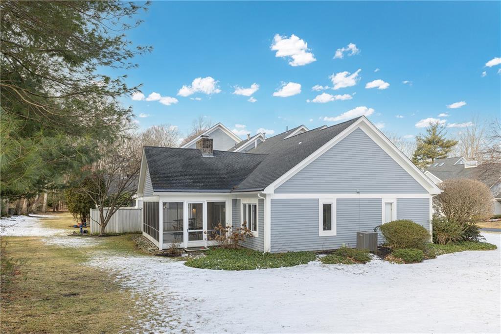 The primary bedroom is oversized and has an ensuite bath. An additional bedroom with en-suite bath is perfect for overnight guests. A powder room, and laundry room are conveniently located next to the entry to the attached two-car garage. Bagy Wrinkle Cove is a tree-lined community with a club house, swimming pool and social activities. It’s in close proximity to the East Bay Bike Path and is a short distance to shops, restaurants and entertainment in Warren and Bristol.
