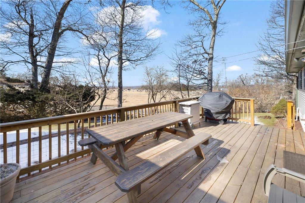 Situated on a cul-de-sac and conveniently located near the highway, restaurants, shops, and easy access to Aquidneck Island and Bristol. Welcome to this beautiful one-level single-family home where charm meets modern convenience. The open-concept layout seamlessly connects the family, dining, and kitchen areas, creating comfortable everyday living and entertaining opportunities! The kitchen is a culinary delight, featuring a center island and stainless-steel appliances. The bay windows in the dining area bring natural light and warmth, highlighting the gleaming hardwood and ceramic floors throughout.