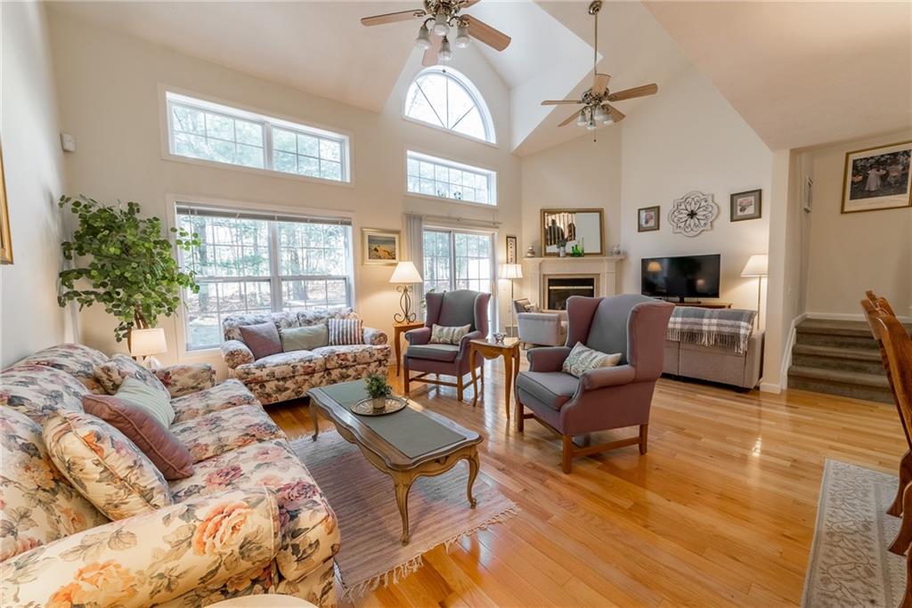 Stunning condo set in the tranquil and convenient Silver Pines of North Smithfield. The “Berry” style footprint offers owners over 1700 sq feet of beautiful living space with an open concept living, dining, and kitchen looking out into a bright and sunny private wooded setting. Relax in the (gas) fireplace living room with soaring cathedral ceilings and no shortage of natural light pouring in. The main level also offers a half bath, laundry space, and direct entry into the 2 car garage for those snowy and rainy days.