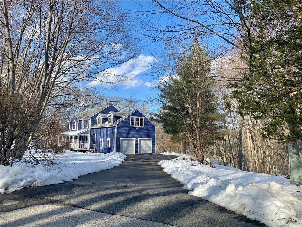 New hardwoods recently installed in the 3 additional spacious bedrooms that share a full bath. Full lower level walkout offers storage and space to finish an office and a large finished great room leads to a tiered deck that was an above ground pool surround left in tact for the new owner to install in time for Summer. This nature lovers paradise offers many outdoor adventures, hiking, trails, bird watching, pitch a tent and enjoy the outdoors! The exterior was recently painted a fabulous Luxe Blue at a cost of $20k. Other amenities include well water, oil forced hot air heat, central air, central vac, alarm and a 1 Year Home Warranty included. Minutes to Rte-4, I-95, Airport, Train, Providence, Newport & Beaches. Come fall in love…