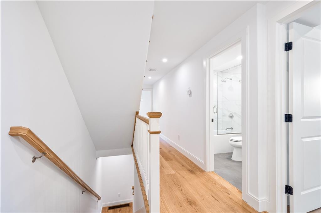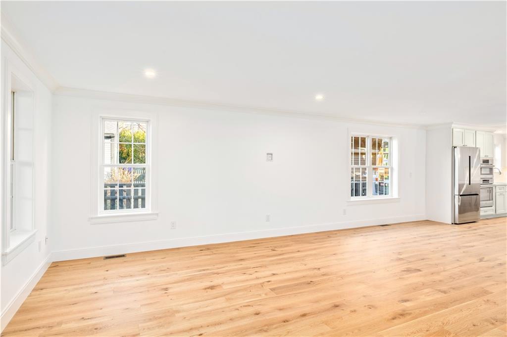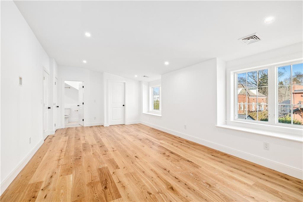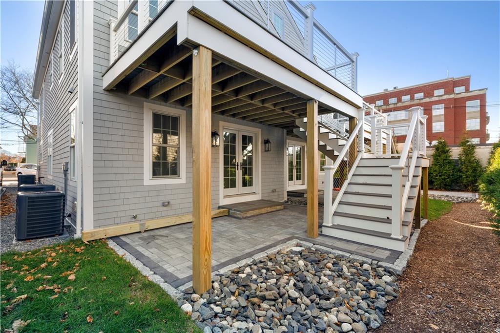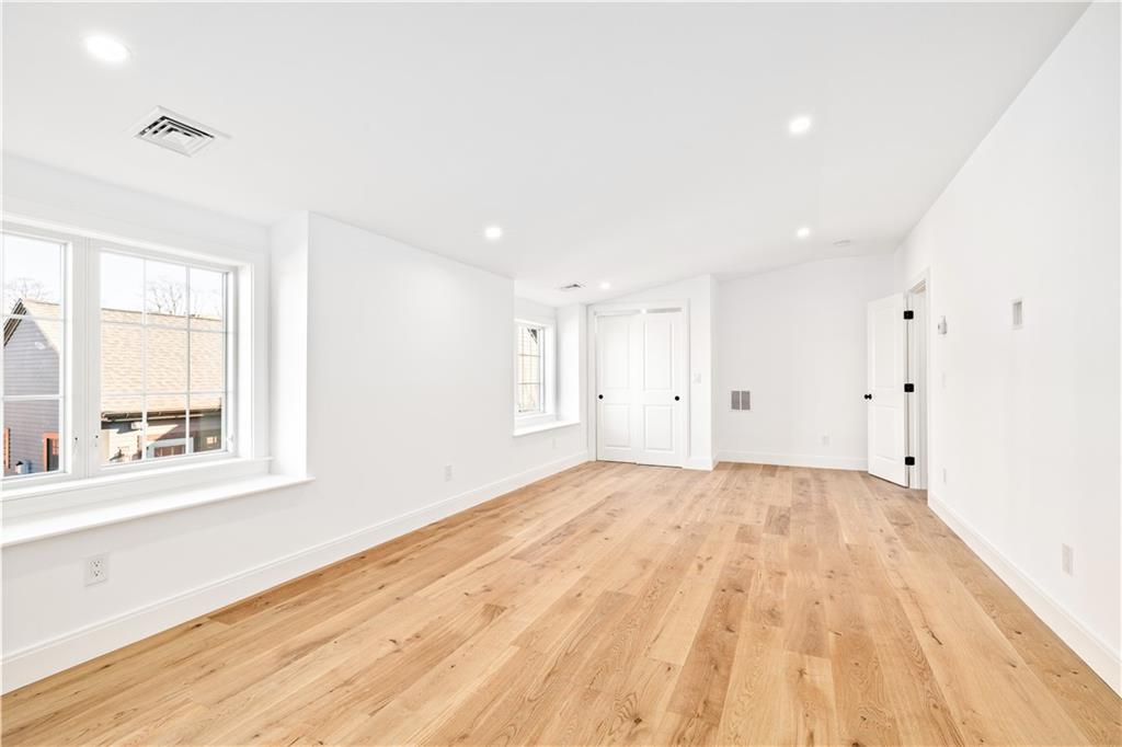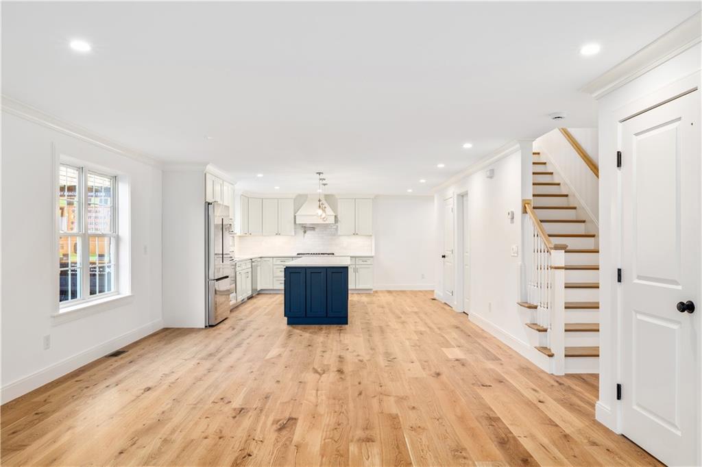 The gourmet kitchen is a chef’s delight, with high-end appliances, an oversized island, quartz countertops, and a separate pantry. Ideal for entertaining and relaxing, the dining area flows seamlessly into the living room and includes a 1/2 bath and French doors to a private patio. On the 2nd floor, an en-suite bedroom enjoys a walk-in closet, a spa-like bath, and a private, water-view deck. A 2nd bedroom, full bath, and laundry room complete this floor. The 3rd floor, designed w/ flexibility in mind, functions as a spacious primary suite with a luxurious en-suite bath and 3 closets, or as a family room, media room, rec room or bunk room–perfect for visits from family or out-of-town guests. An unfinished basement offers plentiful storage & addt’l expansion possibilities. Beautiful white oak floors, low condo fees, central a/c, custom closets, 1 off-street parking space (& ample street parking). Located in a superior walkable location, just steps to Bristol Harbor, marinas, shops, restaurants, Independence Park & the East Bay Bike Path.