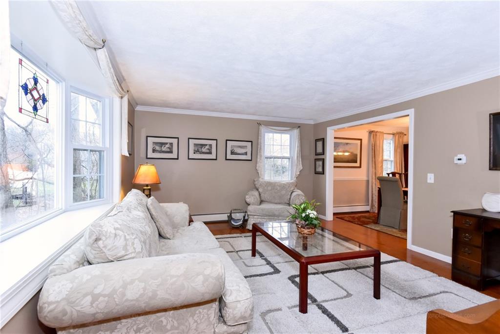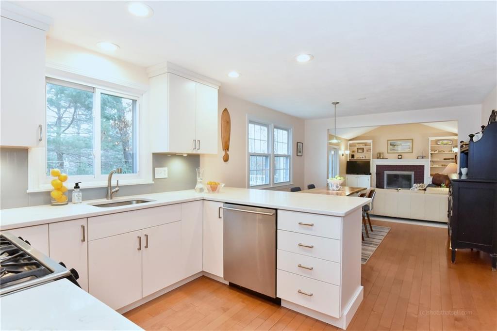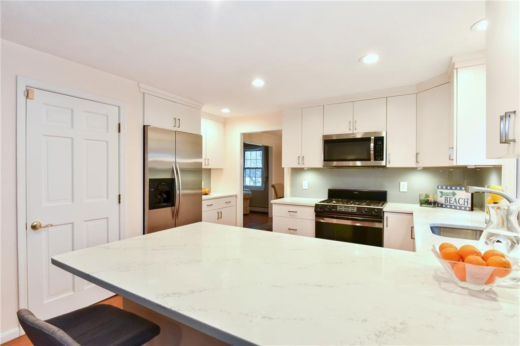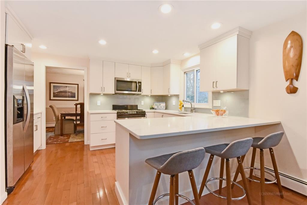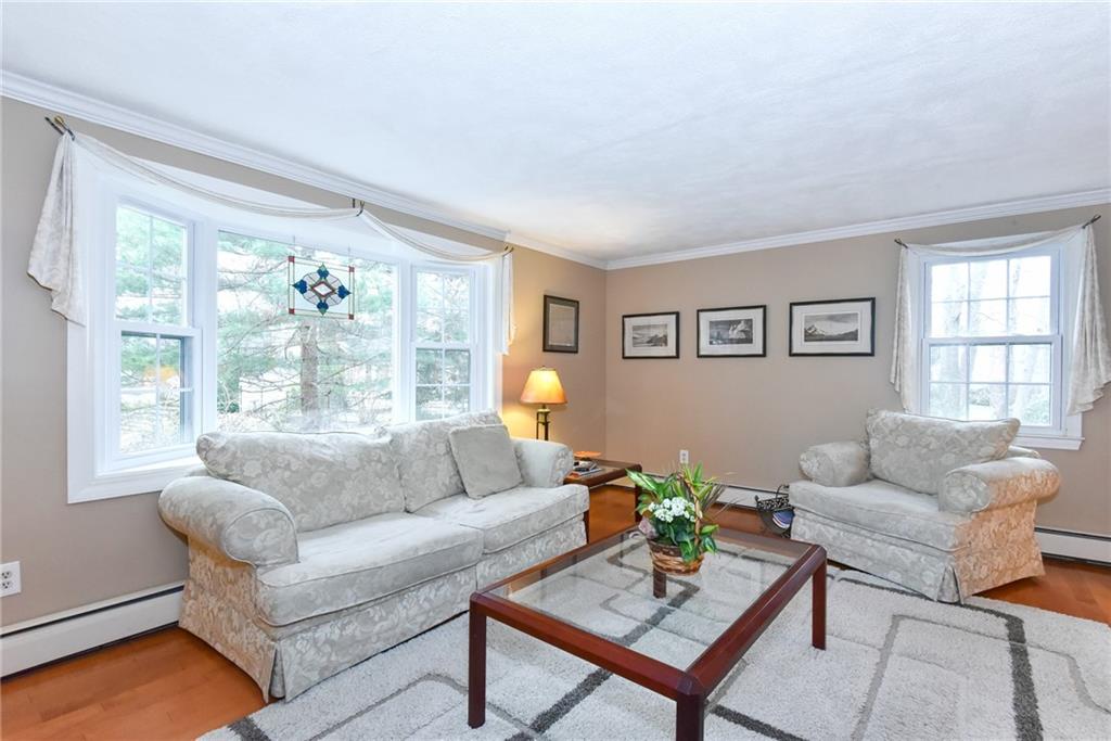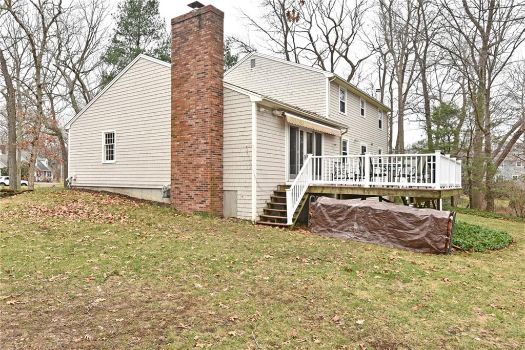 Welcome to this 4 bedroom, 2 1/2 bath colonial in the desirable neighborhood of Cedarfield located just outside of Wickford. Set back off the road this home abuts the protected common land of the development and is set on a cul de sac. First floor – beautifully updated eat in kitchen with white cabinetry, stainless steel appliances and quartz countertops opens to fireplaced family room with sliders leading out to a composite back deck, formal living room, formal dining room, laundry room and powder room. Second floor features primary bedroom with nicely updated full bath, 3 additional bedrooms and full bathroom.