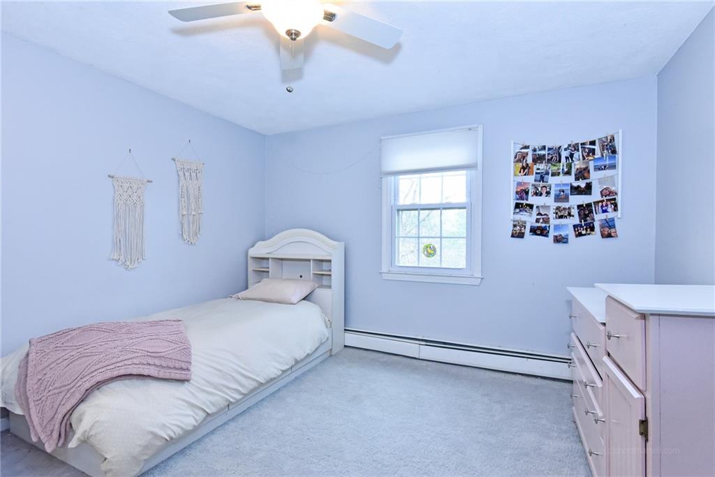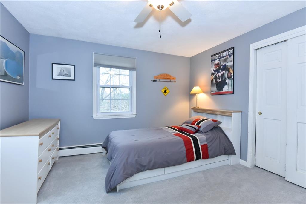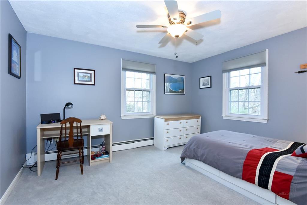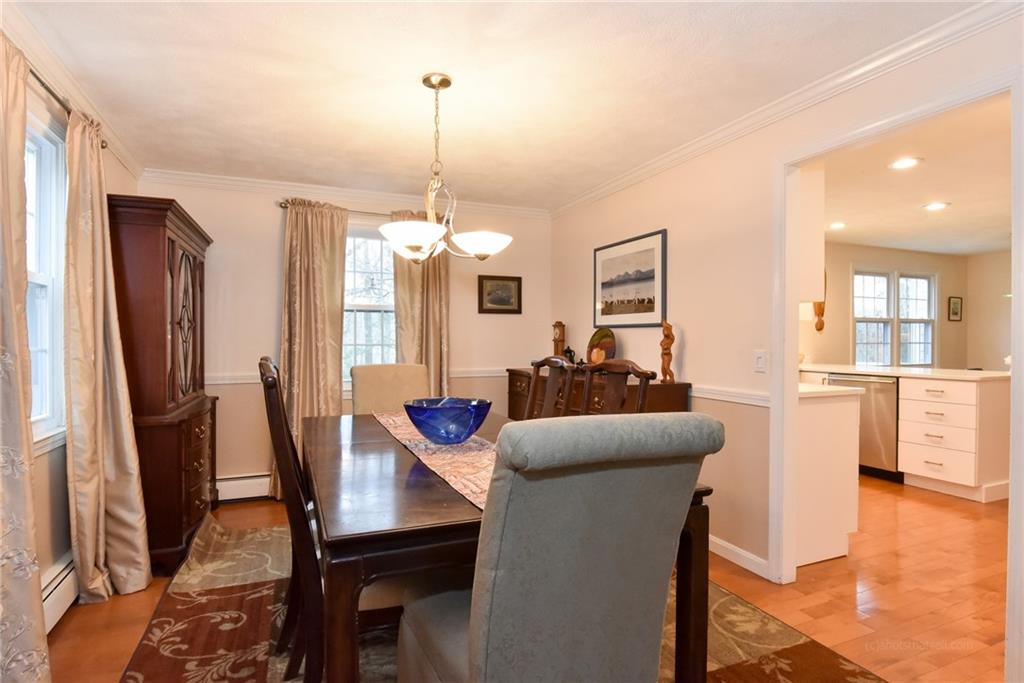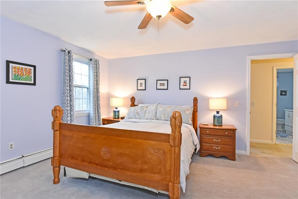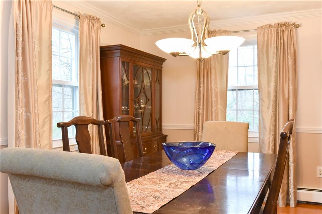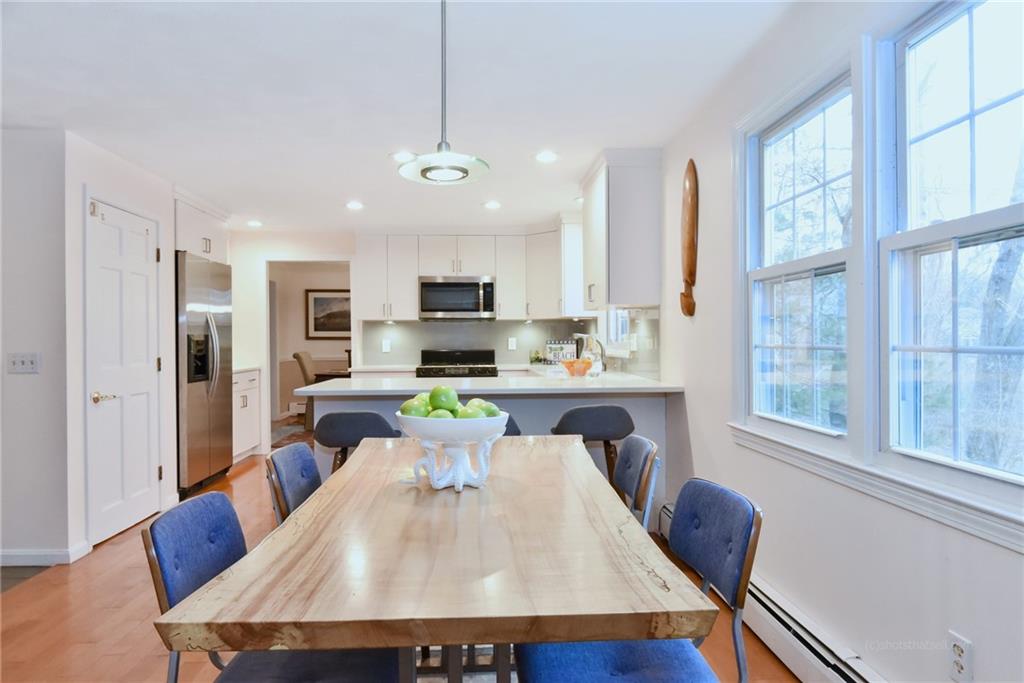 Welcome to this 4 bedroom, 2 1/2 bath colonial in the desirable neighborhood of Cedarfield located just outside of Wickford. Set back off the road this home abuts the protected common land of the development and is set on a cul de sac. First floor – beautifully updated eat in kitchen with white cabinetry, stainless steel appliances and quartz countertops opens to fireplaced family room with sliders leading out to a composite back deck, formal living room, formal dining room, laundry room and powder room. Second floor features primary bedroom with nicely updated full bath, 3 additional bedrooms and full bathroom.