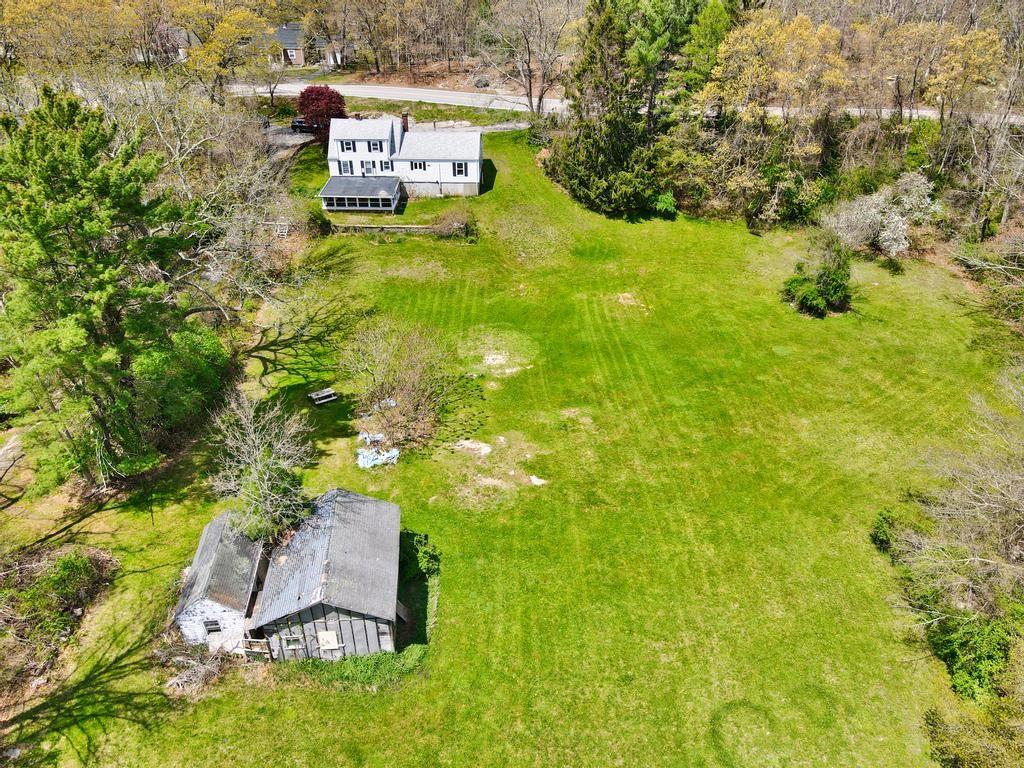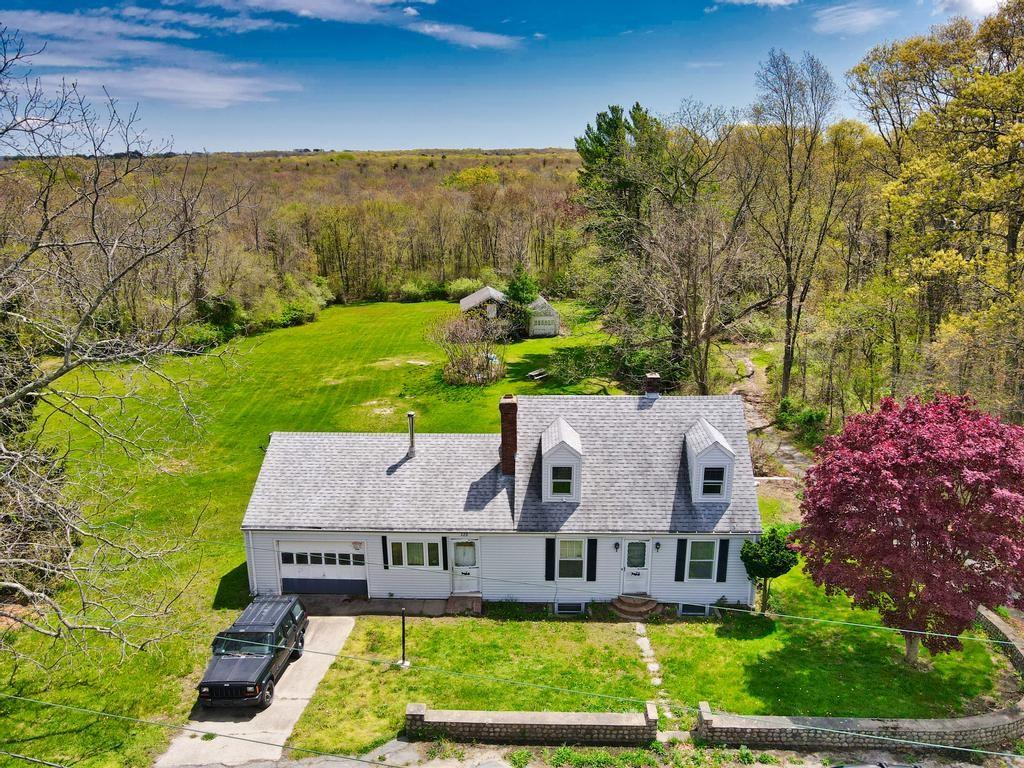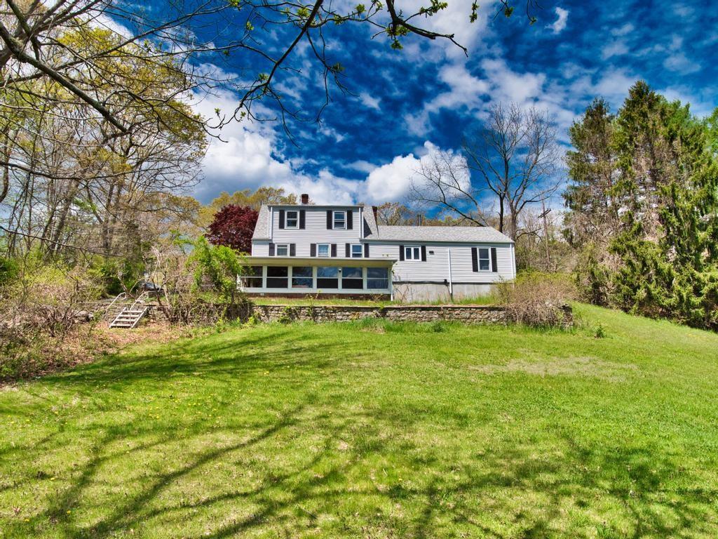 Cape style home on 6.25 acres with woods, a spacious backyard and stone walls throughout the property. This 3 BR, 1BA, 1712 SF home has hardwood floors, an attached garage, wood stove and a finished basement. Large enclosed porch that overlooks the private backyard. Two good sized outbuildings.