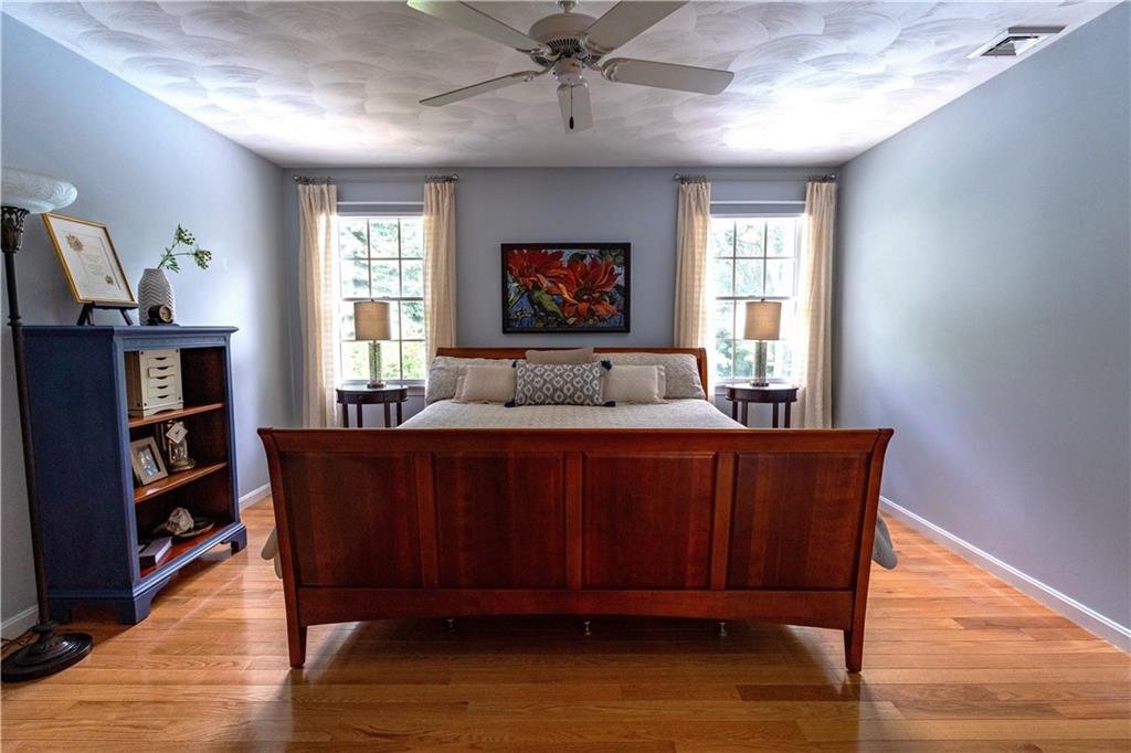 The soaring entry foyer is mirrored by the formal dining and living rooms. Details to note on the first level are the 9′ ceilings, crown mouldings, raised panelled accents and hardwood flooring. Hardwoods continue onto the second level in the four bedrooms. The main suite leads to a spacious cathedral ceiling bath with jacuzzi tub and walk-in closet. Additional living space in the finished lower level is well planned for the family to enjoy movie nights, a game of pool or a quick workout. A bonus office area, workshop and ample storage finish the functional lower level.