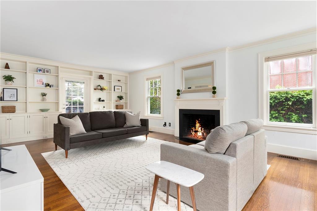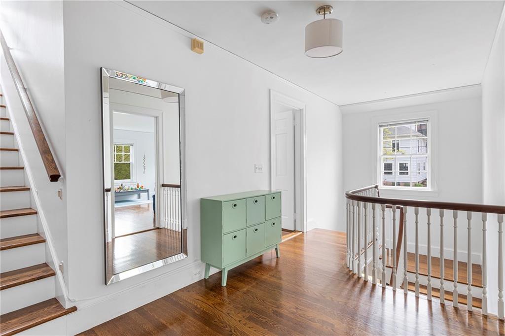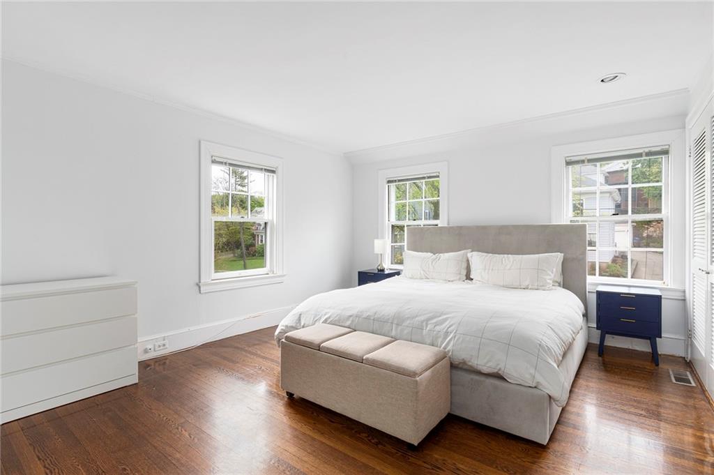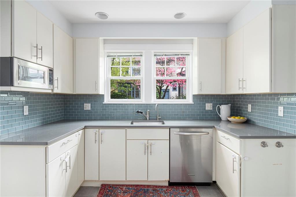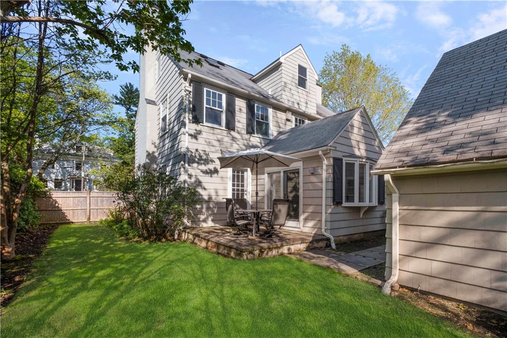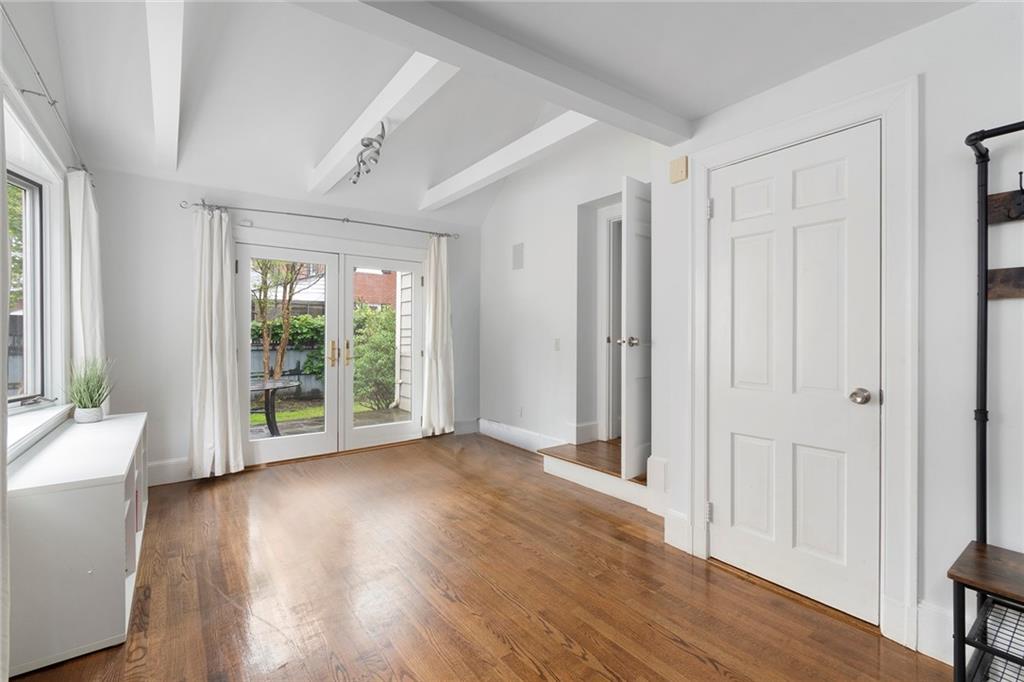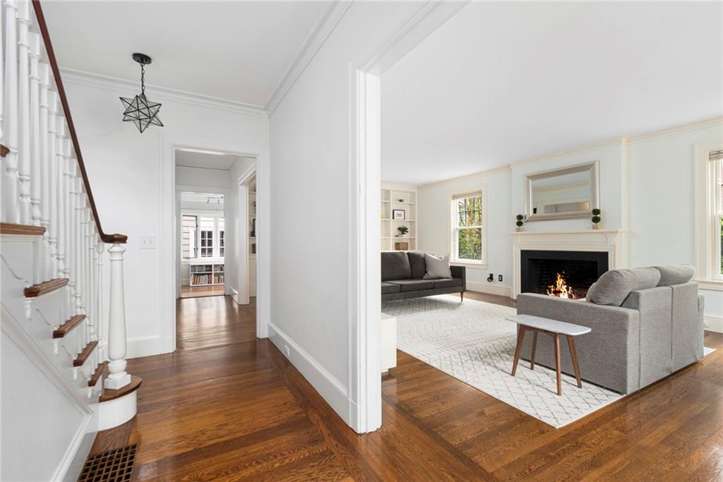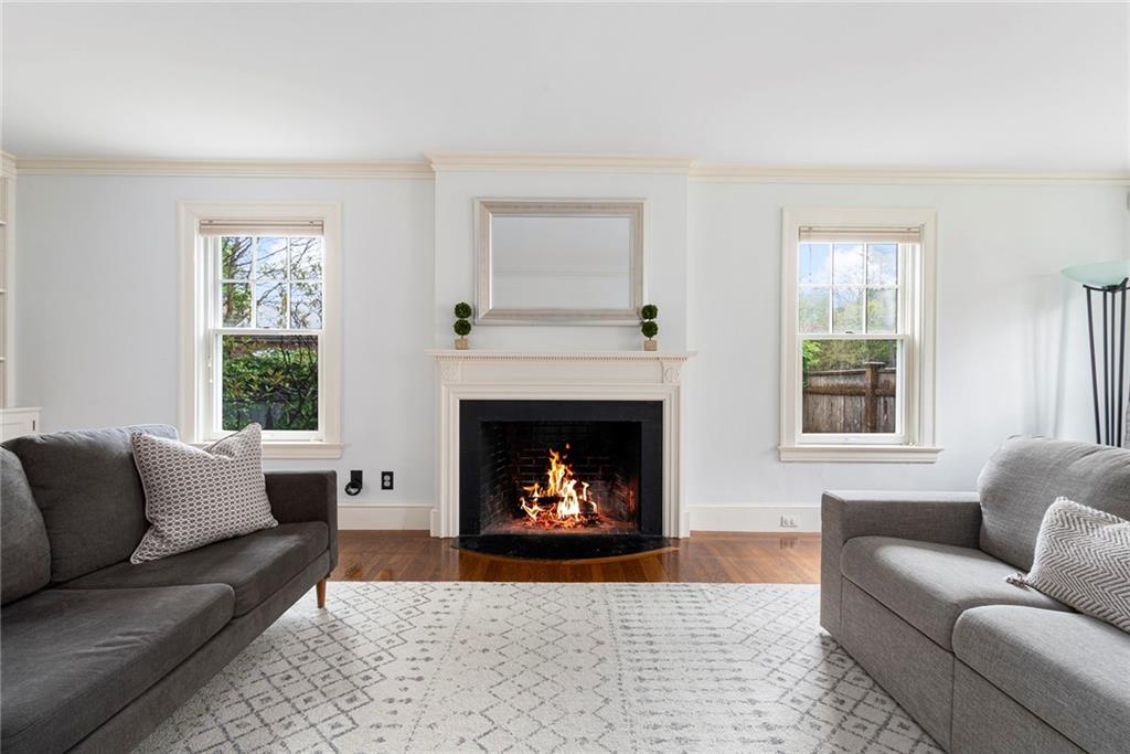 A mudroom area creates a nice transition from the exterior to the charming eat-in kitchen with stainless steel appliances, followed by the fireplaced dining room. The second floor continues the crisp style, as hardwood floors accent a lovely primary suite with an ensuite bath and double closets. Two bedrooms with sun streaming from windows on two sides are served by a full hallway bath. The third floor offers more fresh, bright, easily customized space with an additional bedroom, the perfect home office/zoom room and full bath. Central AC and a 2-car garage complete this ideal East Side home. The fabulous location allows for shopping or dining at nearly Wayland Square or visit the boutiques and restaurants along Hope St. and Thayer St. Walks along Blackstone Boulevard, Lippitt Park, and the waterfront of India Point Park add natural splendor, while the train station and downtown PVD are minutes away.