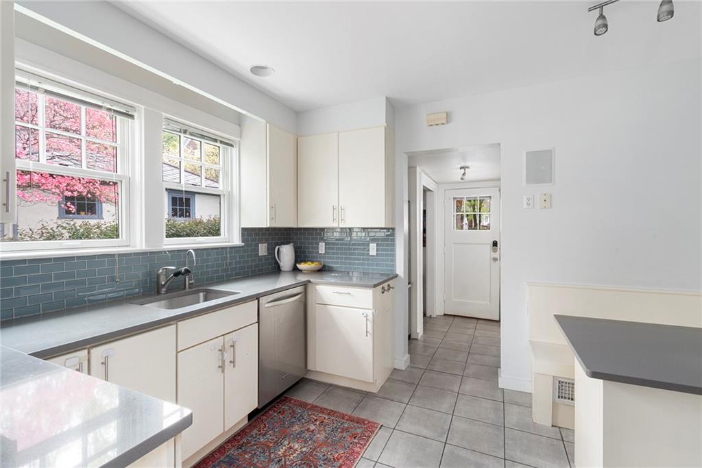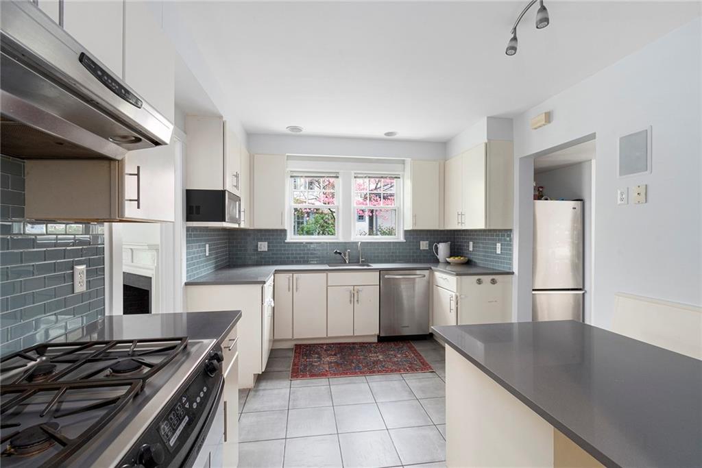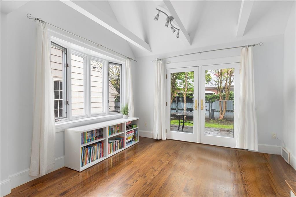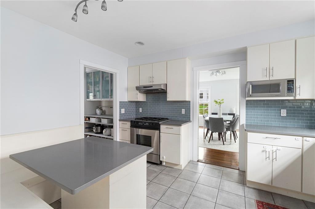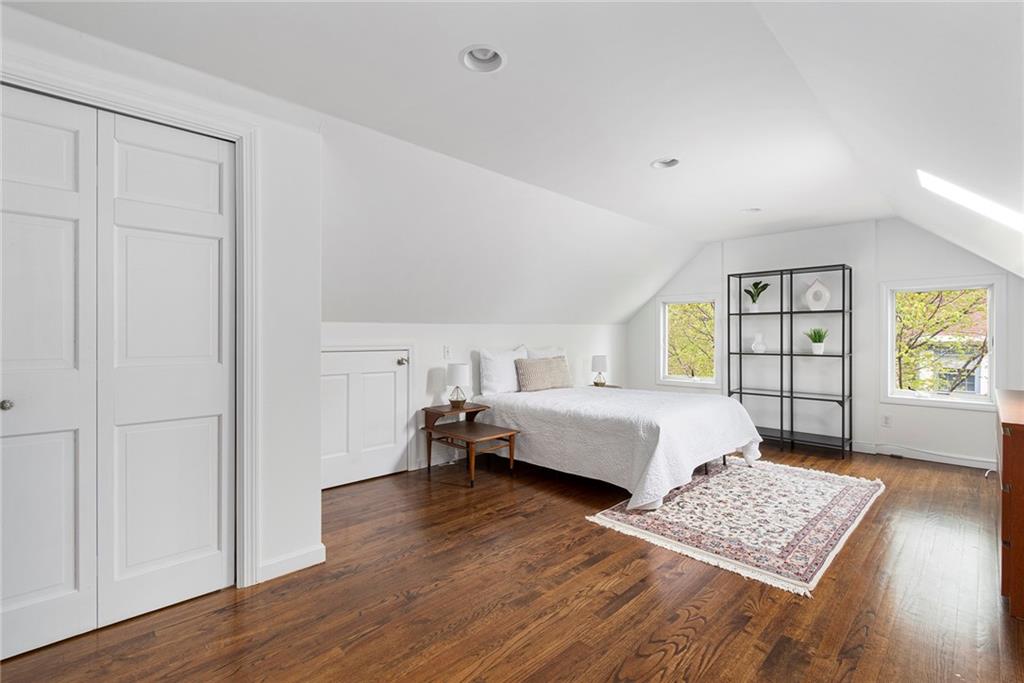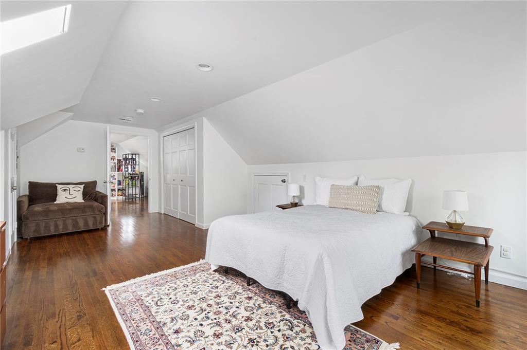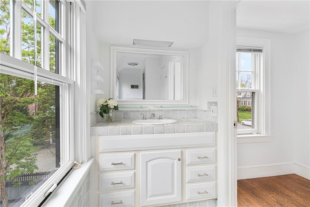 A mudroom area creates a nice transition from the exterior to the charming eat-in kitchen with stainless steel appliances, followed by the fireplaced dining room. The second floor continues the crisp style, as hardwood floors accent a lovely primary suite with an ensuite bath and double closets. Two bedrooms with sun streaming from windows on two sides are served by a full hallway bath. The third floor offers more fresh, bright, easily customized space with an additional bedroom, the perfect home office/zoom room and full bath. Central AC and a 2-car garage complete this ideal East Side home. The fabulous location allows for shopping or dining at nearly Wayland Square or visit the boutiques and restaurants along Hope St. and Thayer St. Walks along Blackstone Boulevard, Lippitt Park, and the waterfront of India Point Park add natural splendor, while the train station and downtown PVD are minutes away.