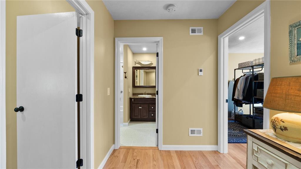 OCEAN RIGHT OUT THE BACK DOOR! Enjoy the water views of Wickford Harbor right from the owner’s bedroom balcony or relax after a long day on your own private front courtyard or water facing main floor rear deck. Incredible property for entertaining friends and family! Bright and sunny open first floor, beautiful and well-designed kitchen with pass through window to the dining area featuring stainless appliances, plenty of neutral stone countertop, and lots of warm wood cabinets. Gleaming hardwood floors throughout the main and upstairs. Large owner’s suite upstairs full of natural light from the extended windows and sliding door to the balcony.