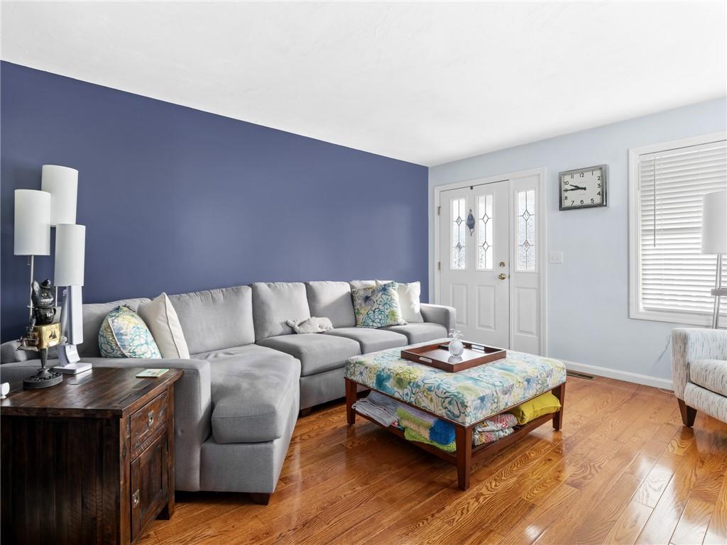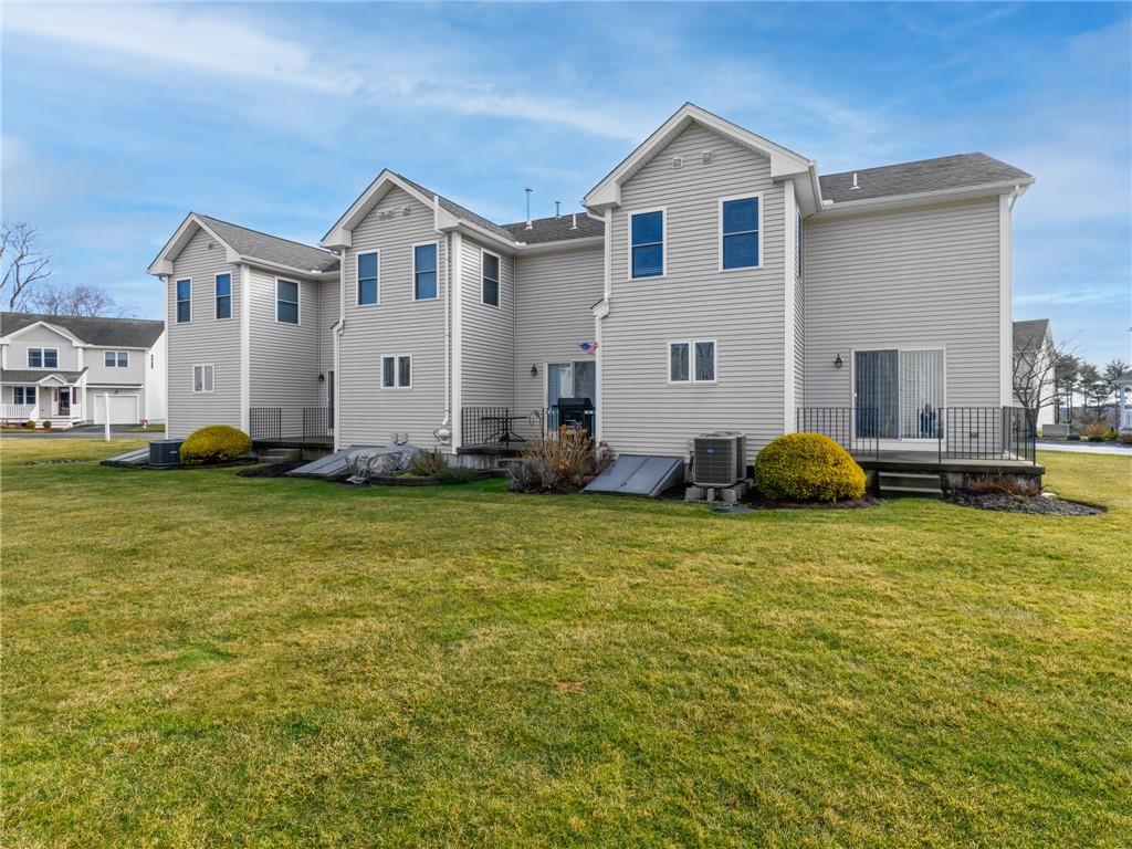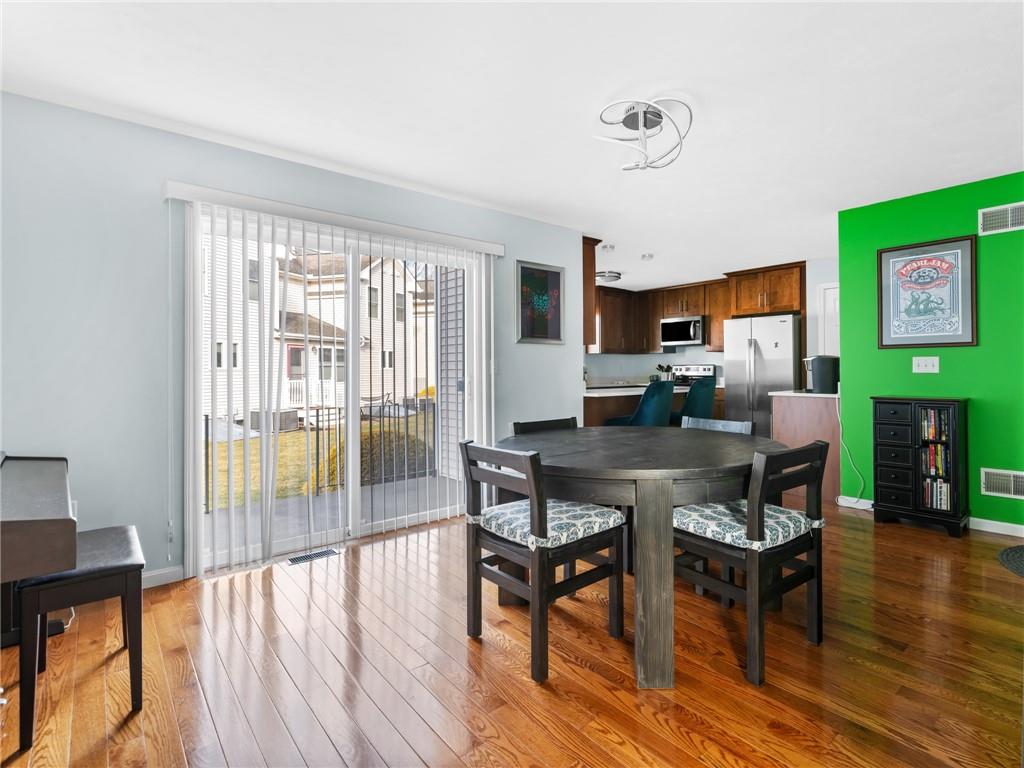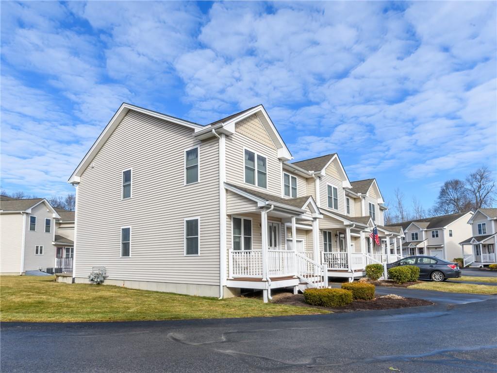 An inviting front porch welcomes you to this charming townhouse-style end unit condo. Flowing throughout the main level are beautiful hardwood floors, connecting the comfortable living space with an open kitchen and dining area. The kitchen is brand new with quartz countertops, stainless steel appliances, modern and clean elements, and convenient counter seating. A sliding glass door opens out to an elevated rear patio, perfect for outdoor dining and enjoying the warm weather.