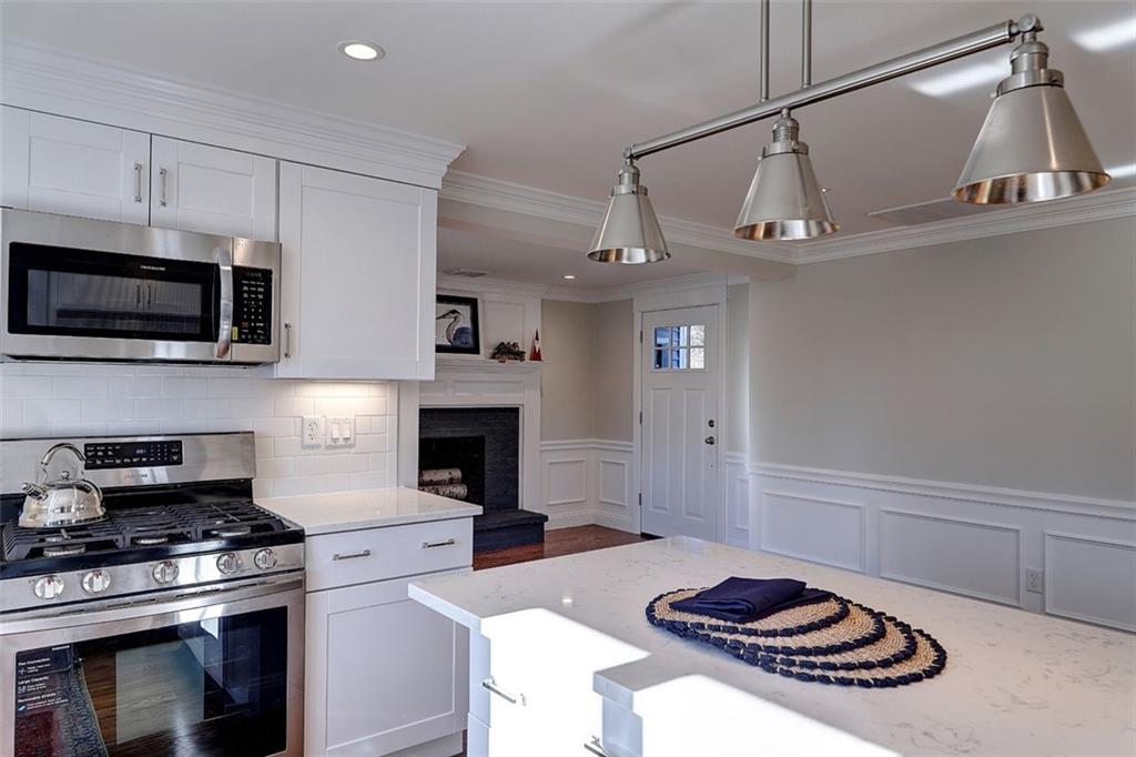 Absolutely sensational Almeida renovation! NEW! NEW! NEW! Bright and sparkling coastal decorating! Sunny redesigned open floorplan!! New gas forced air heating system (no baseboards), new central air,. New windows and new siding! Pretty new white kitchen with cottage-style cabinetry, center island seating, Cashmere Carrera quartz countertops, polished nickel pulls, stunning island lighting, stainless steel appliances including French door refrigerator, two brand new bathrooms with all the bells and whistles, private master bath with a walk-in shower, whirlpool tub and double sinks – quartz countertops!. “Signature Almeida” details include: Custom fireplace mantel and over-mantel, gorgeous crown molding, chair rail, wainscot applied paneling, and beautiful hardwood floors! ;Fabulous windowed mudroom