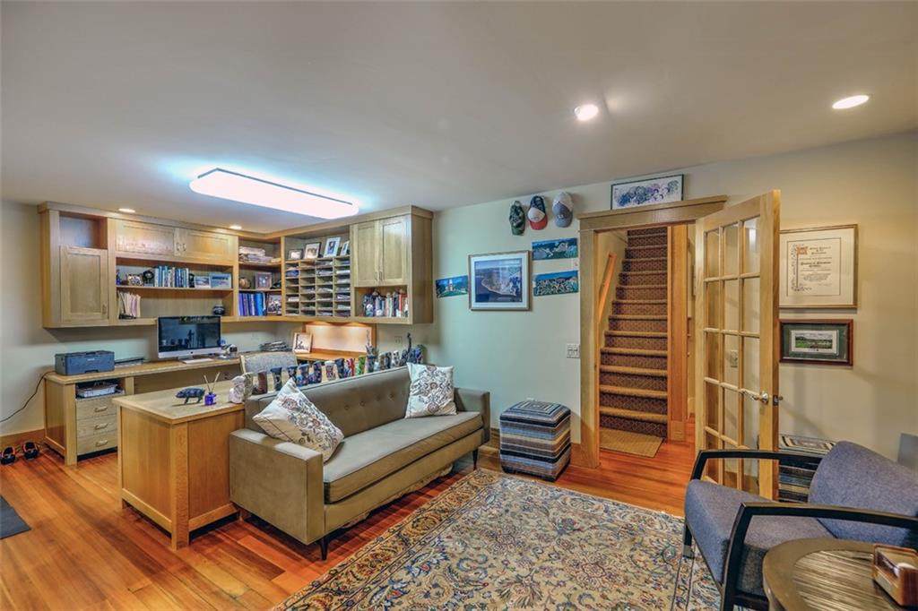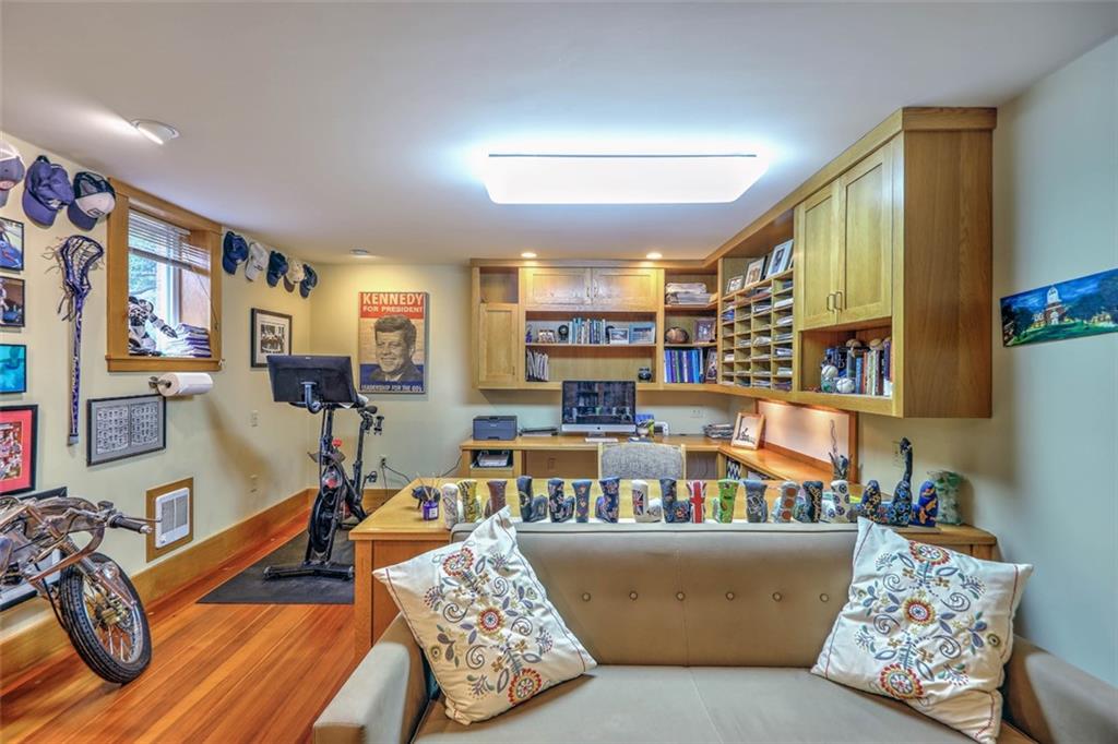 The kitchen opens to a deck through sliding doors leading to a fenced yard area. A side entrance with half bath and laundry, and a small mudroom area provide easy access to the garage and driveway. With four bedrooms, one located on the first floor with its own bath, and a study which could also serve as an additional bedroom, there is ample room for each member of the family to have their own space. Another laundry area on the second floor provides modern day ease and flexibility. Besides plenty of storage in the basement, a custom-built office and playroom, an additional half bath and walk-out to the lower yard adds to the functionality of this home. Central air, updated mechanicals, a two-car detached garage and a driveway offering space for 3-4 cars. Don’t miss out on this opportunity to live in Providence, close to universities, great restaurants and shopping.