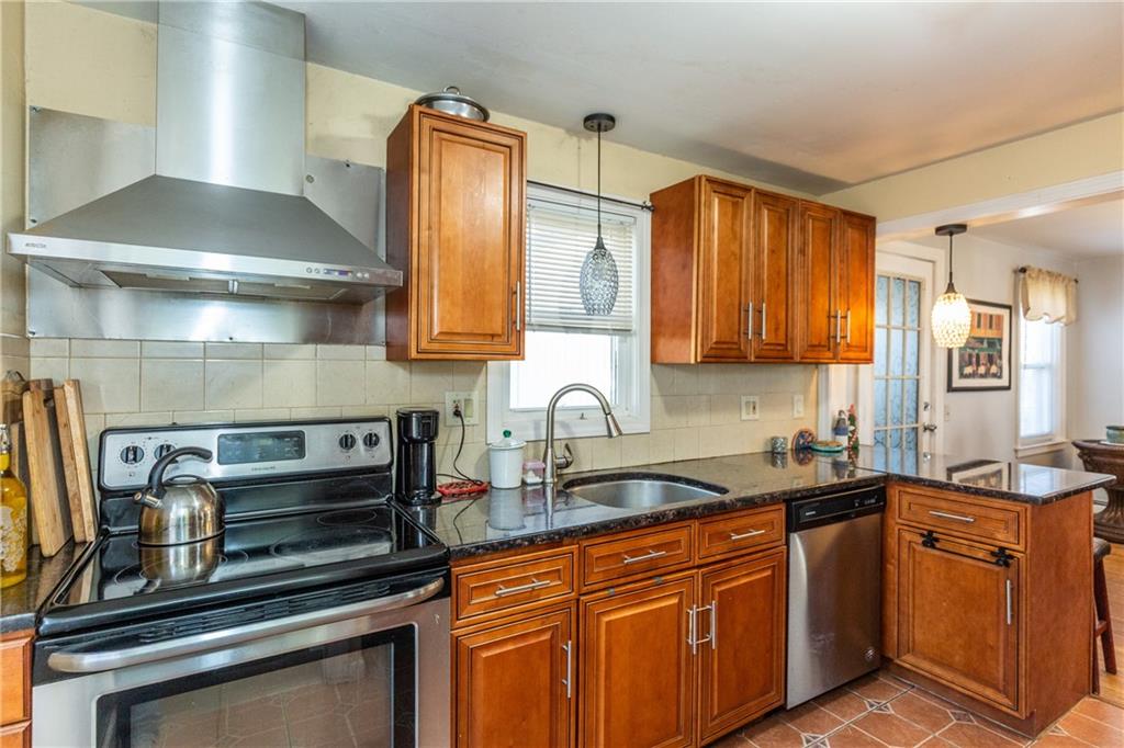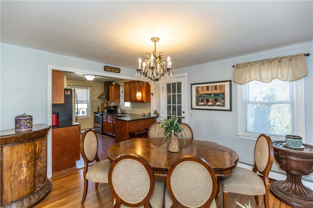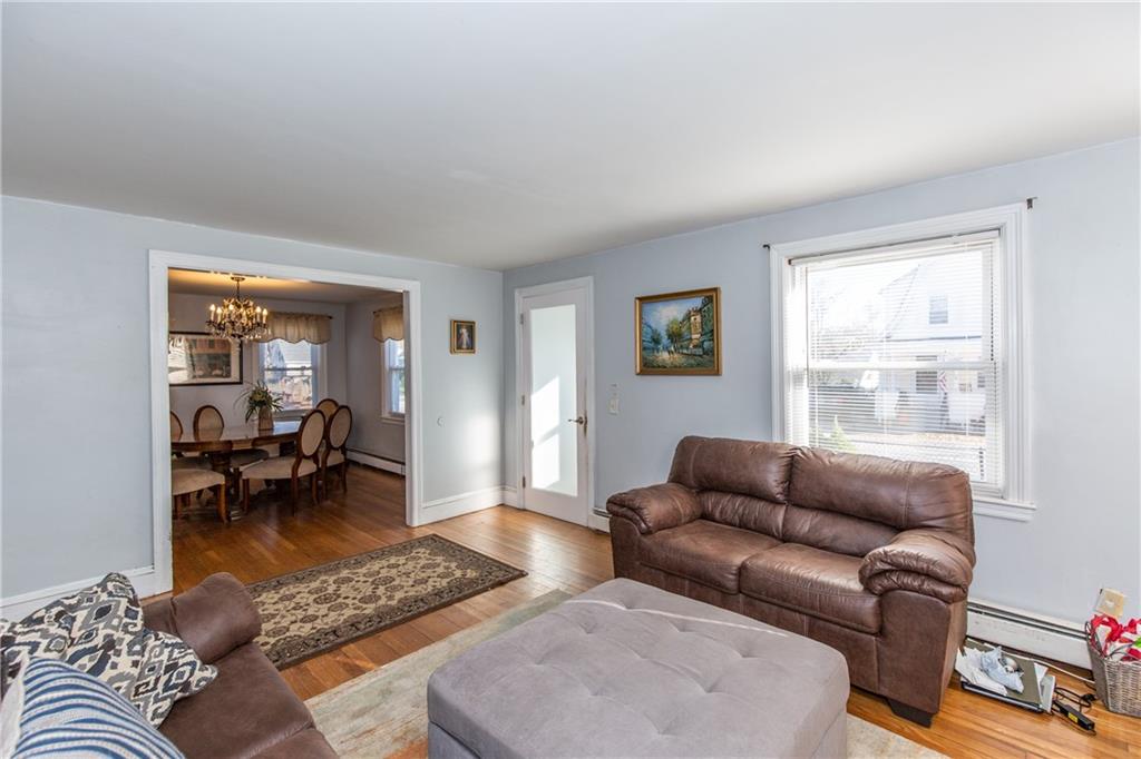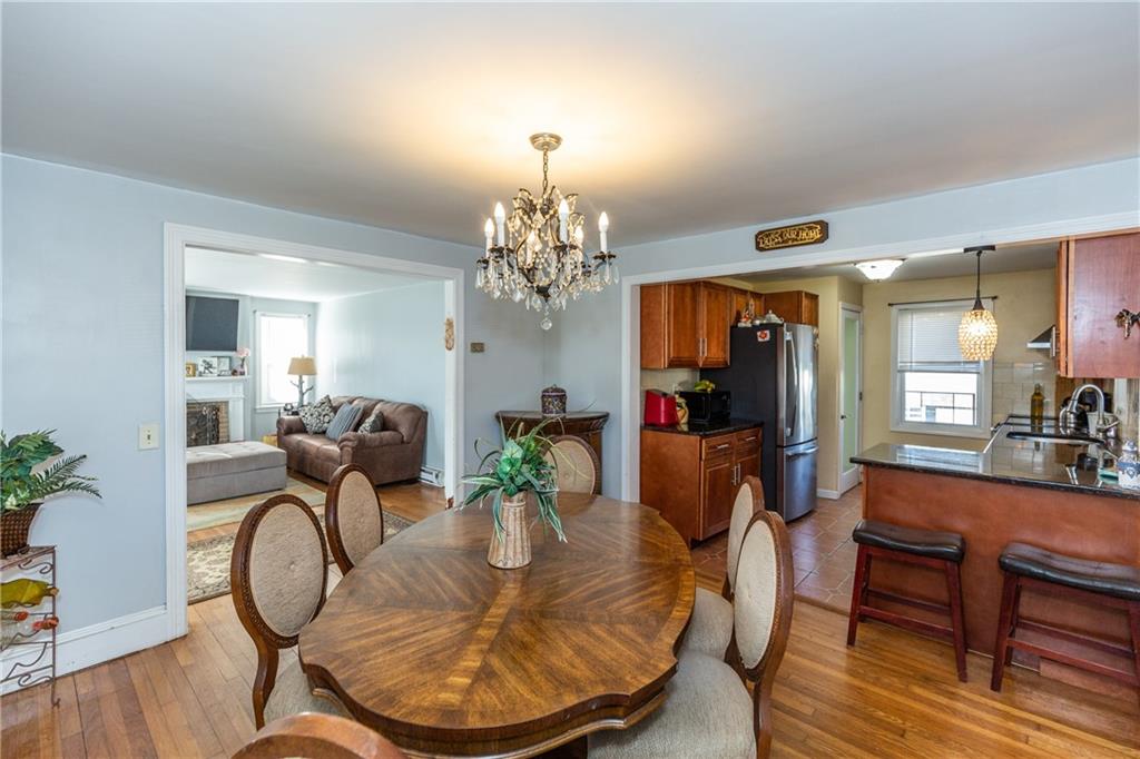 This charming Cape Cod is situated on a corner lot in the Fruit Hill/Centerdale neighborhood, and offers a nice open floor plan. Hardwood floors throughout the fireplaced living room and into the spacious dining room, which opens to the kitchen featuring cozy counter-seating and stainless appliances. There’s a full white tiled bath on the main level, as well as a second full bath upstairs with the three nicely-sized bedrooms. The lower level is finished with a family room, office/playroom, laundry room, and storage area.
