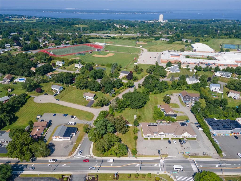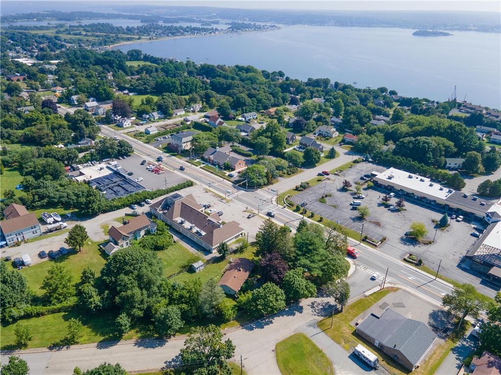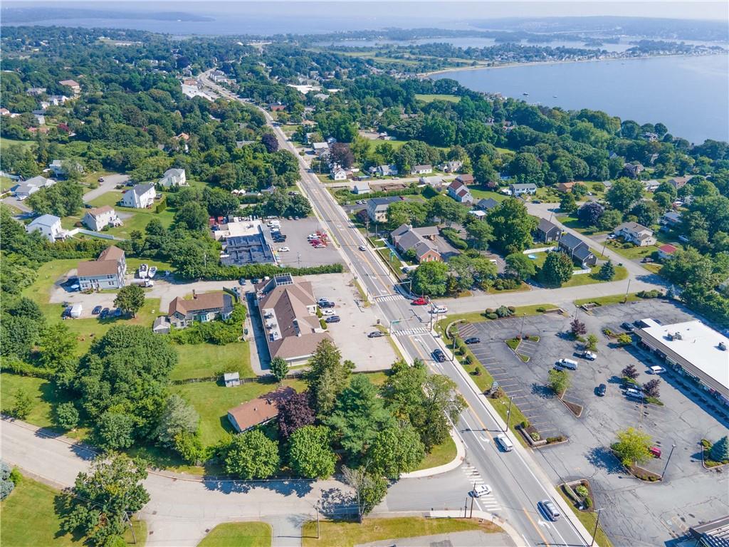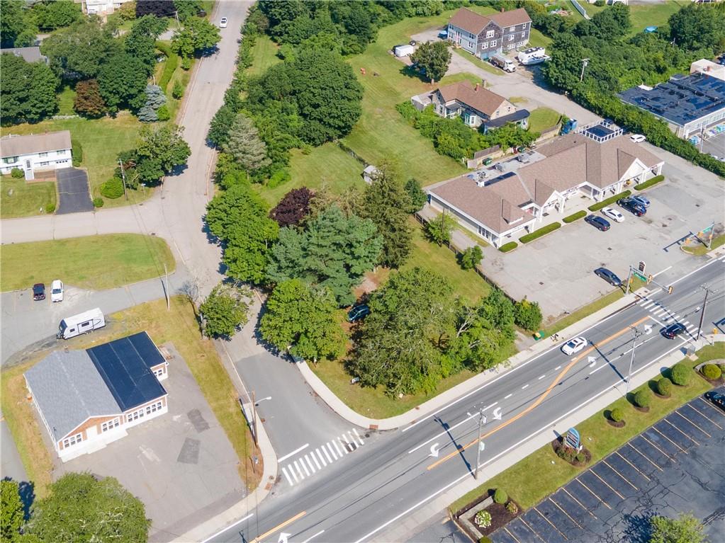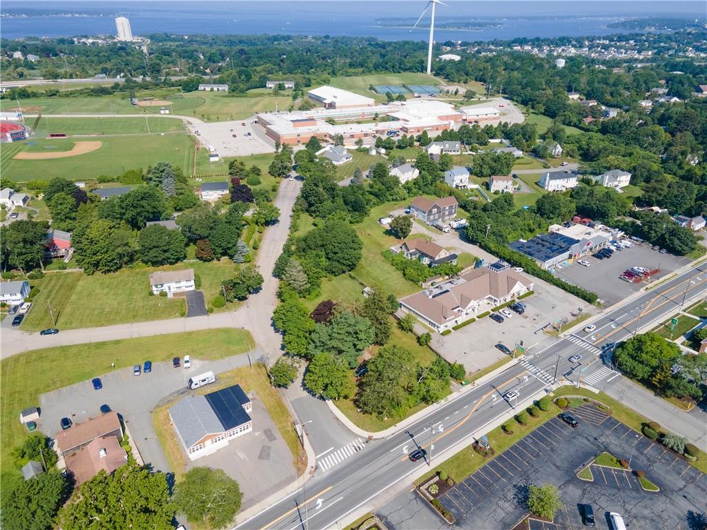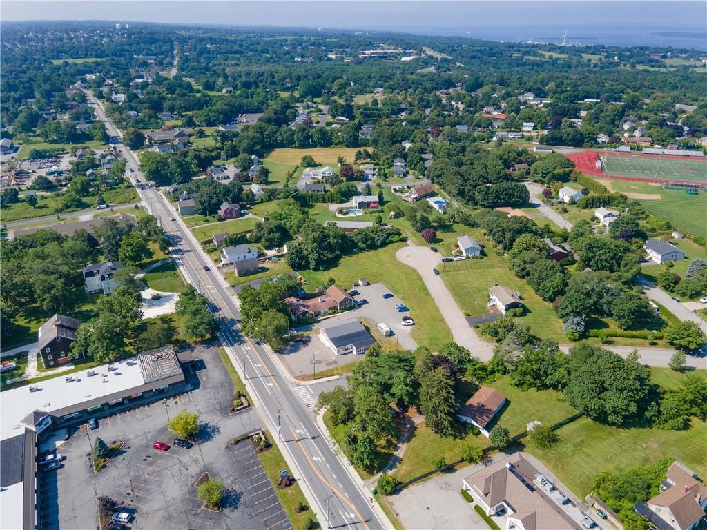 Excellent opportunity to buy prime .53 acre commercial corner located at entrance/exit to Portsmouth High School in the center of town. This high traffic count offering includes an access easement over 3030 East Main Road…a busy retail plaza at the traffic light, an approved curb cut on Patriot’s Drive, and DEM approved septic design for 30 seats. Site plan includes parking for 22+ cars. Currently there is a single family mid century modern ranch, rented through Dec.